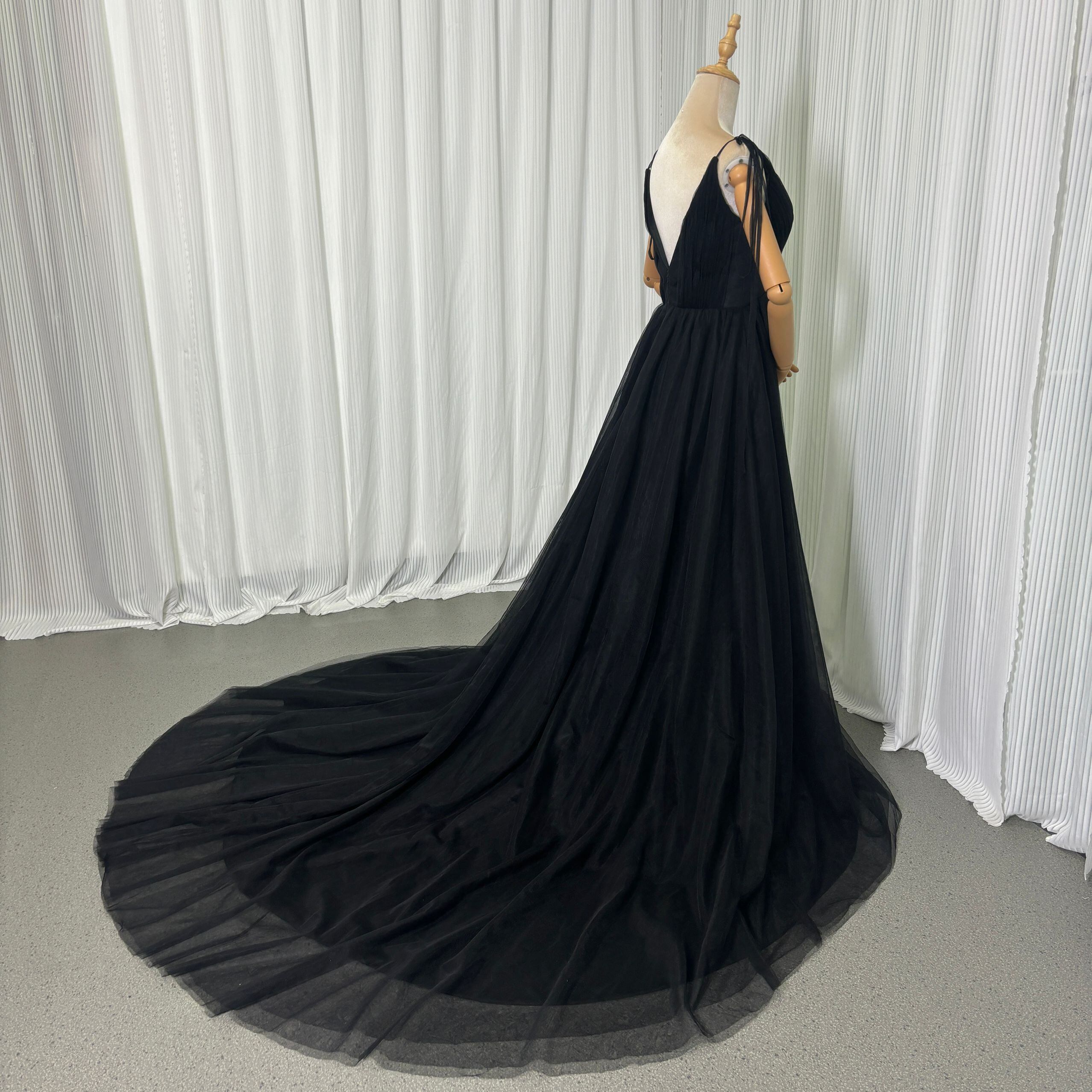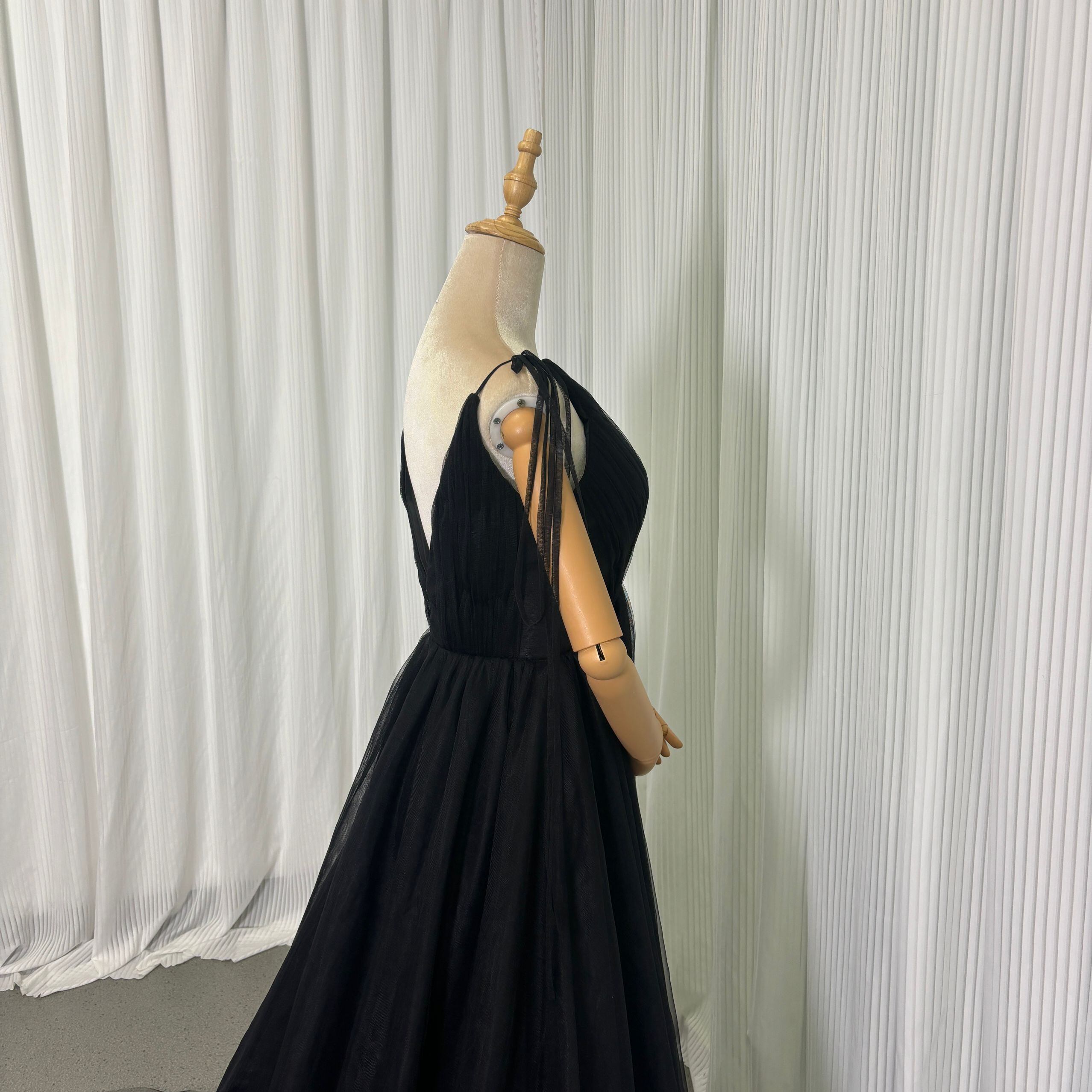 パーティードレス ブラック Vネック キャミソール ファスナー ソフトチュール 前撮り