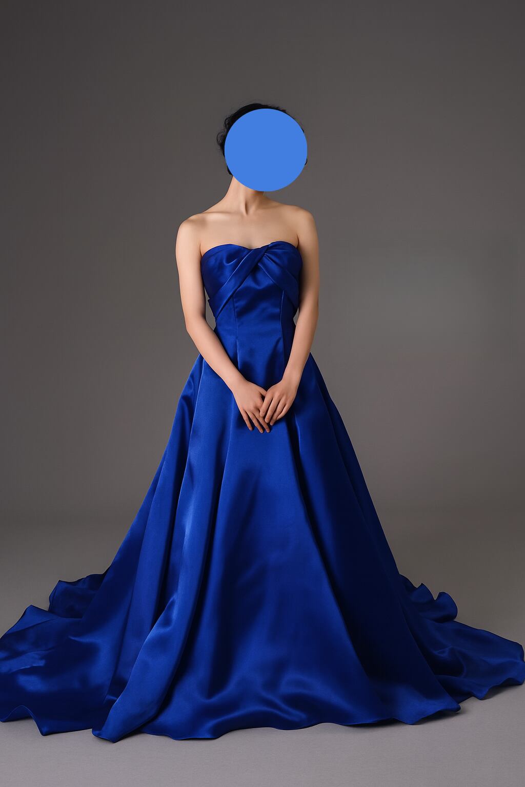 カラードレス ジュエルブルー ベアトップ バックリボン 抜群のおしゃれ見え 演奏会/音楽会