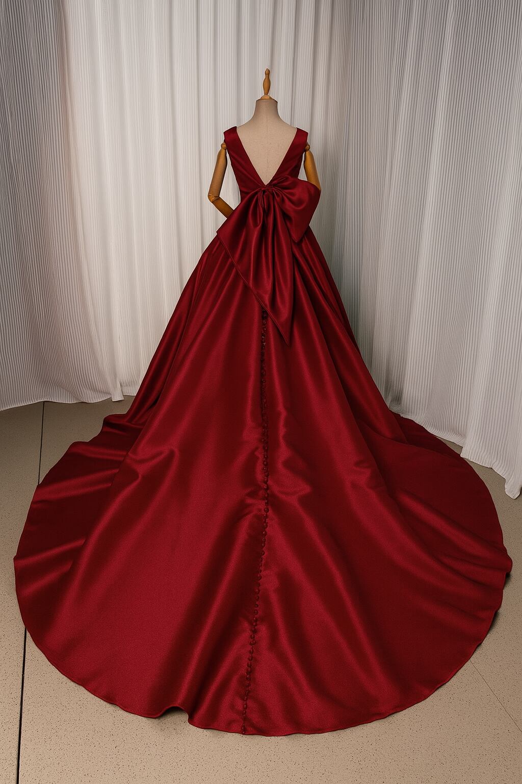 カラードレス ボルドー色 ノースリーブ ミカドサテン ふっくら柔らかなバックリボン クラシカル 花嫁