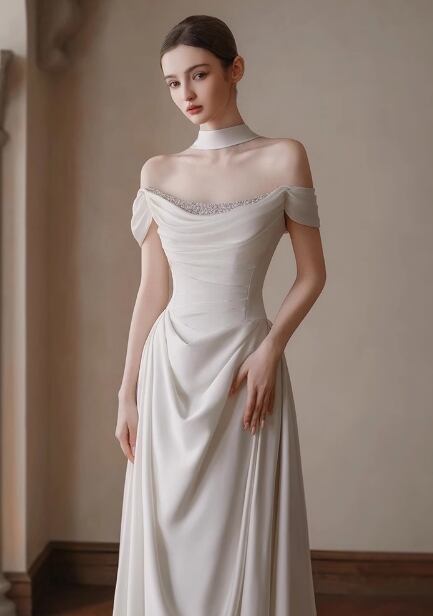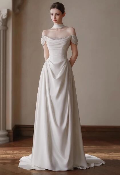 華やか ウェディングドレス オフショルダー 優雅なシルエット 編み上げ 結婚式 前撮り