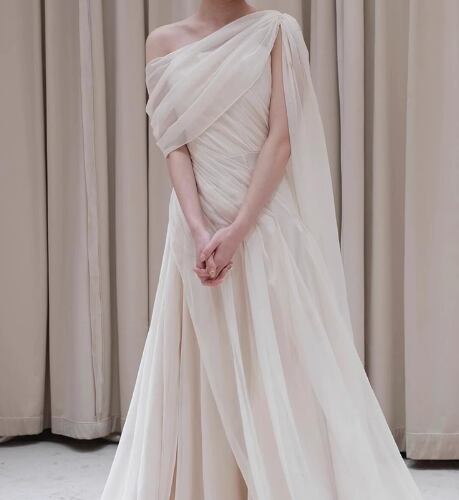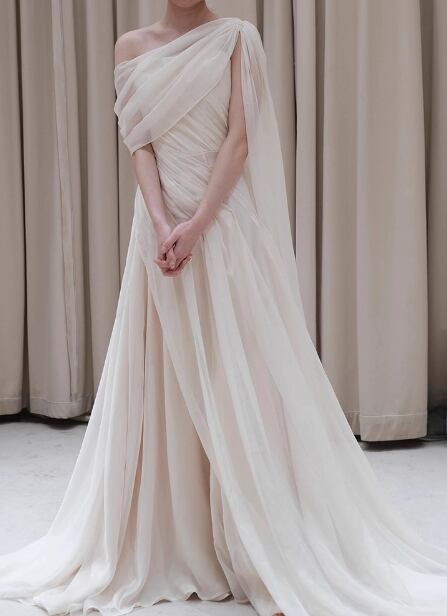 フランス風 ウエディングドレス ワンショルダー チュールスカート ふわふわドレス 結婚式/披露宴