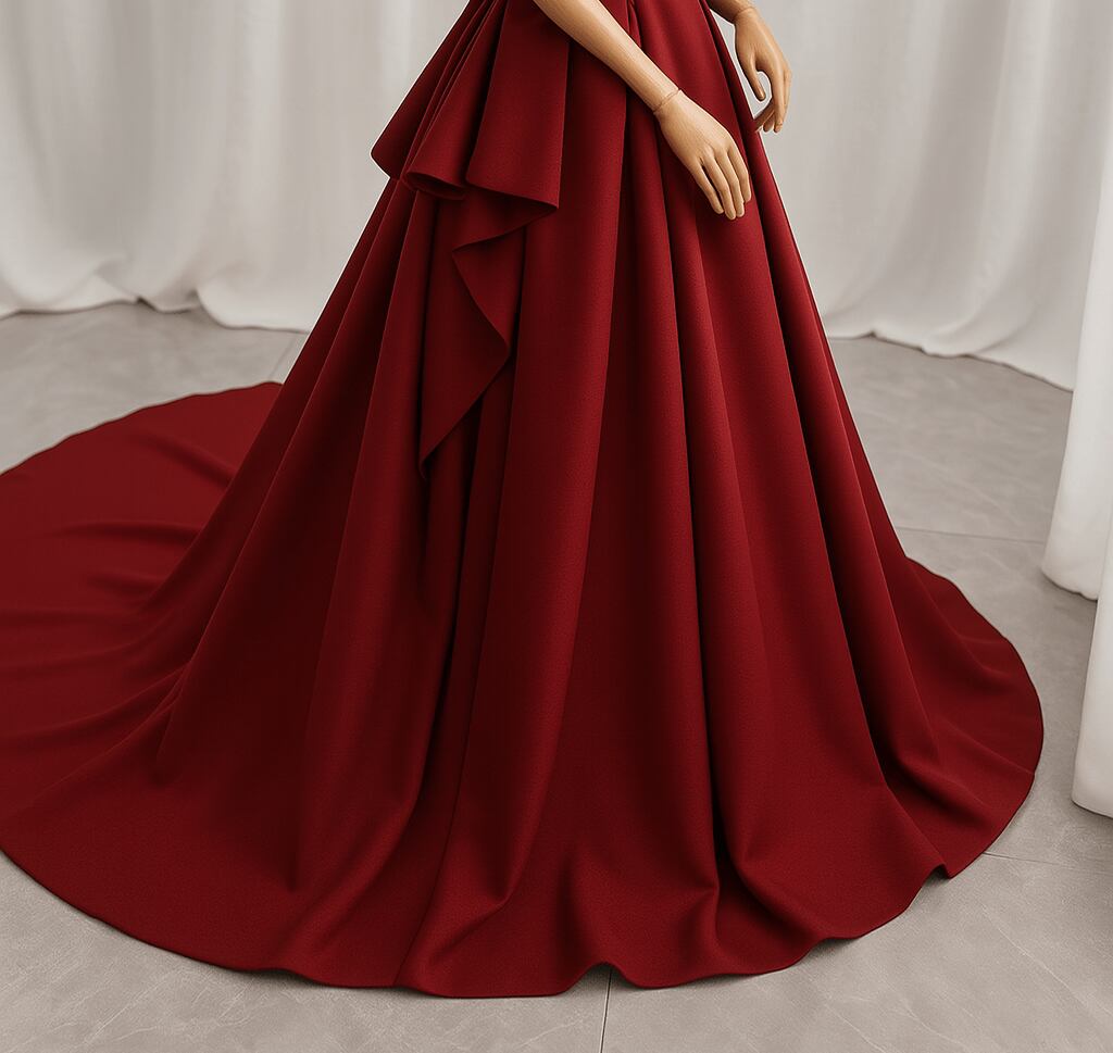 カラードレス ボルドー色 オフショルダー 光沢サテン 立体ドレープ 結婚式 派手な ファスナー