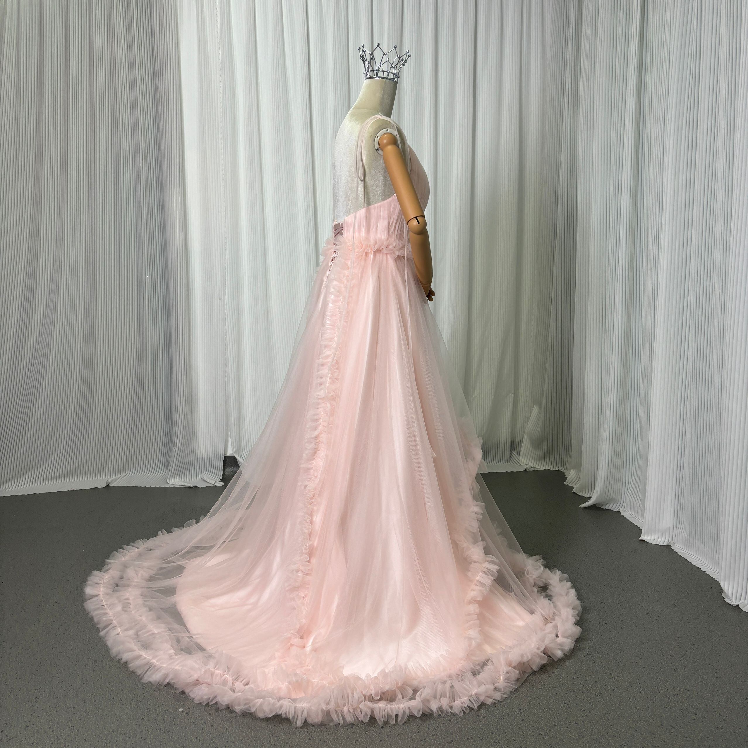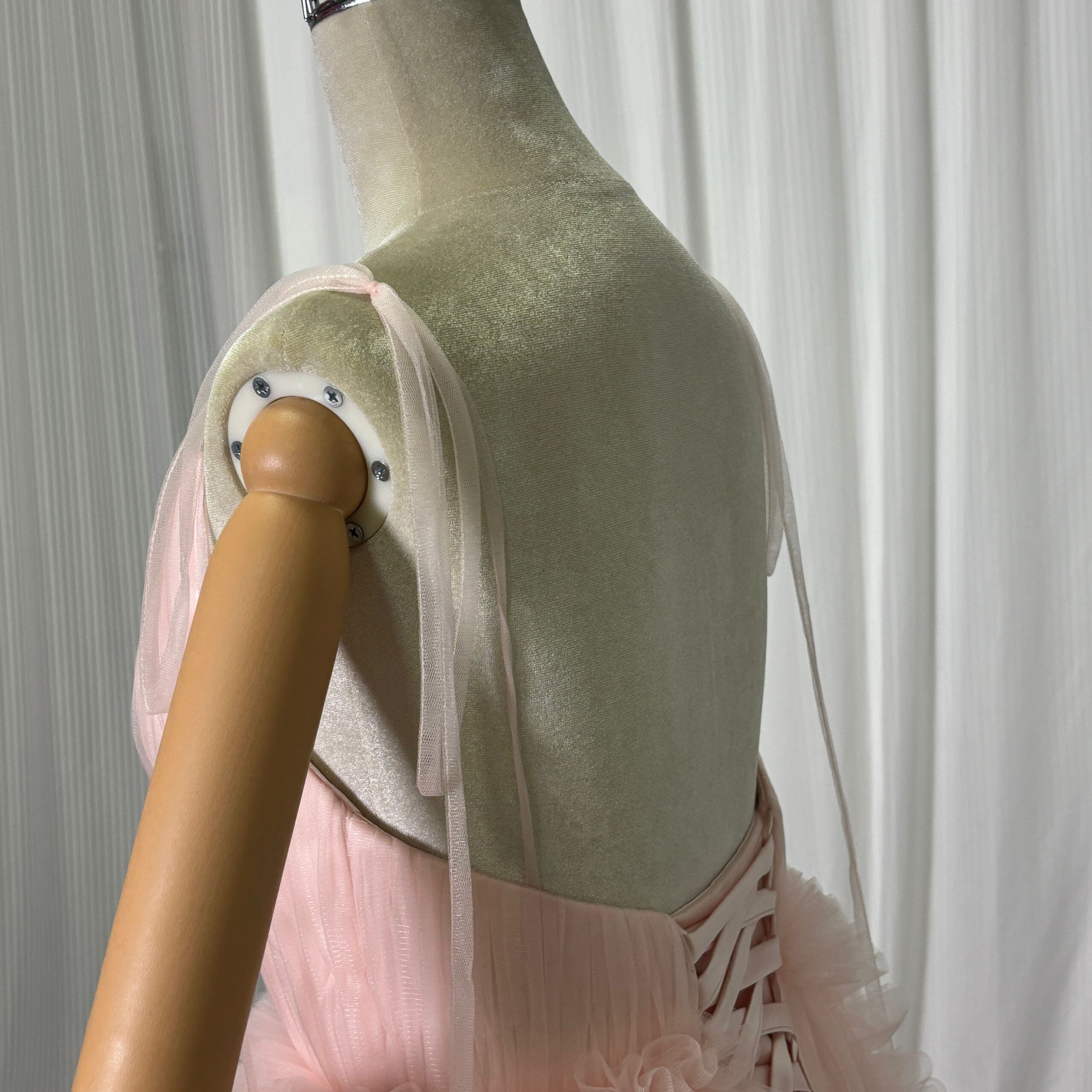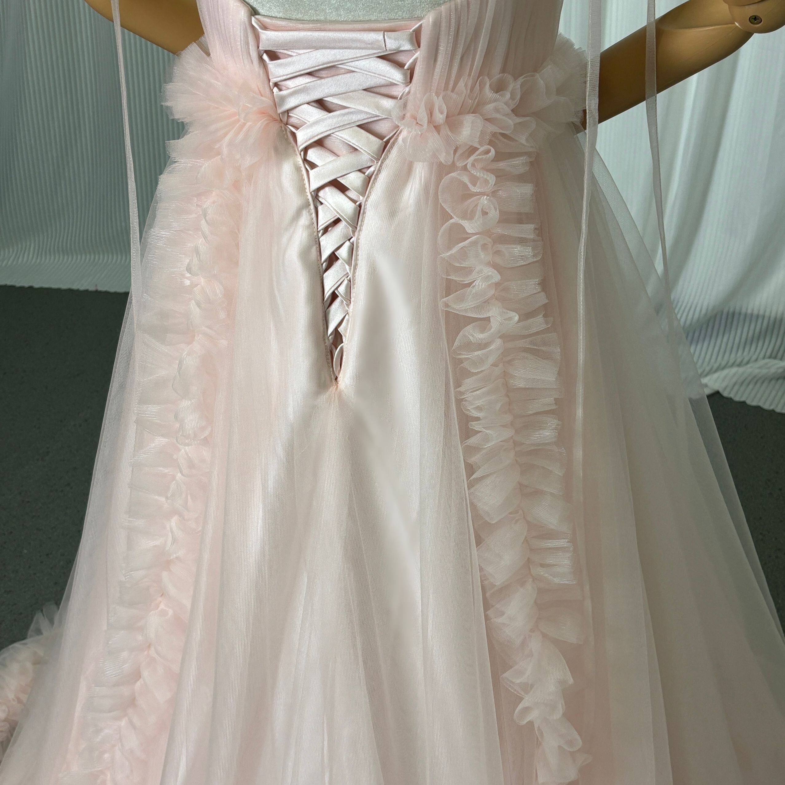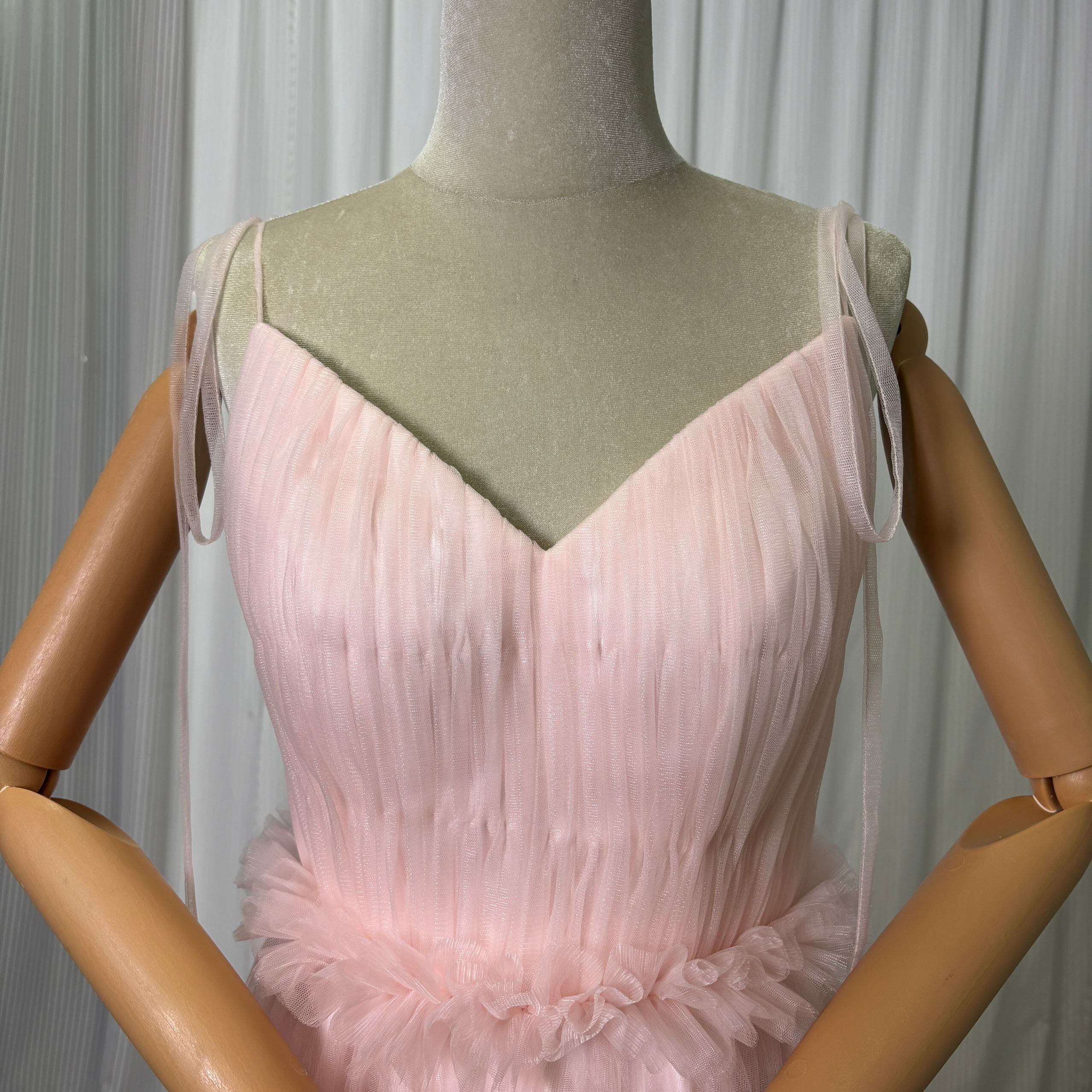 カラードレス 薄ピンク キャミソール Vネック 編み上げ リボントレーン 前撮り ピアノ演奏会