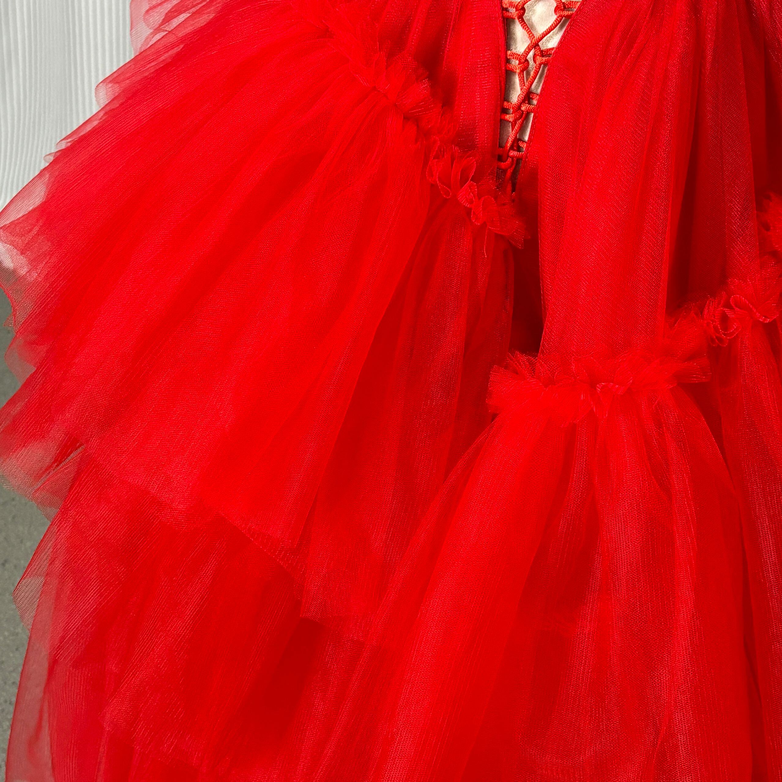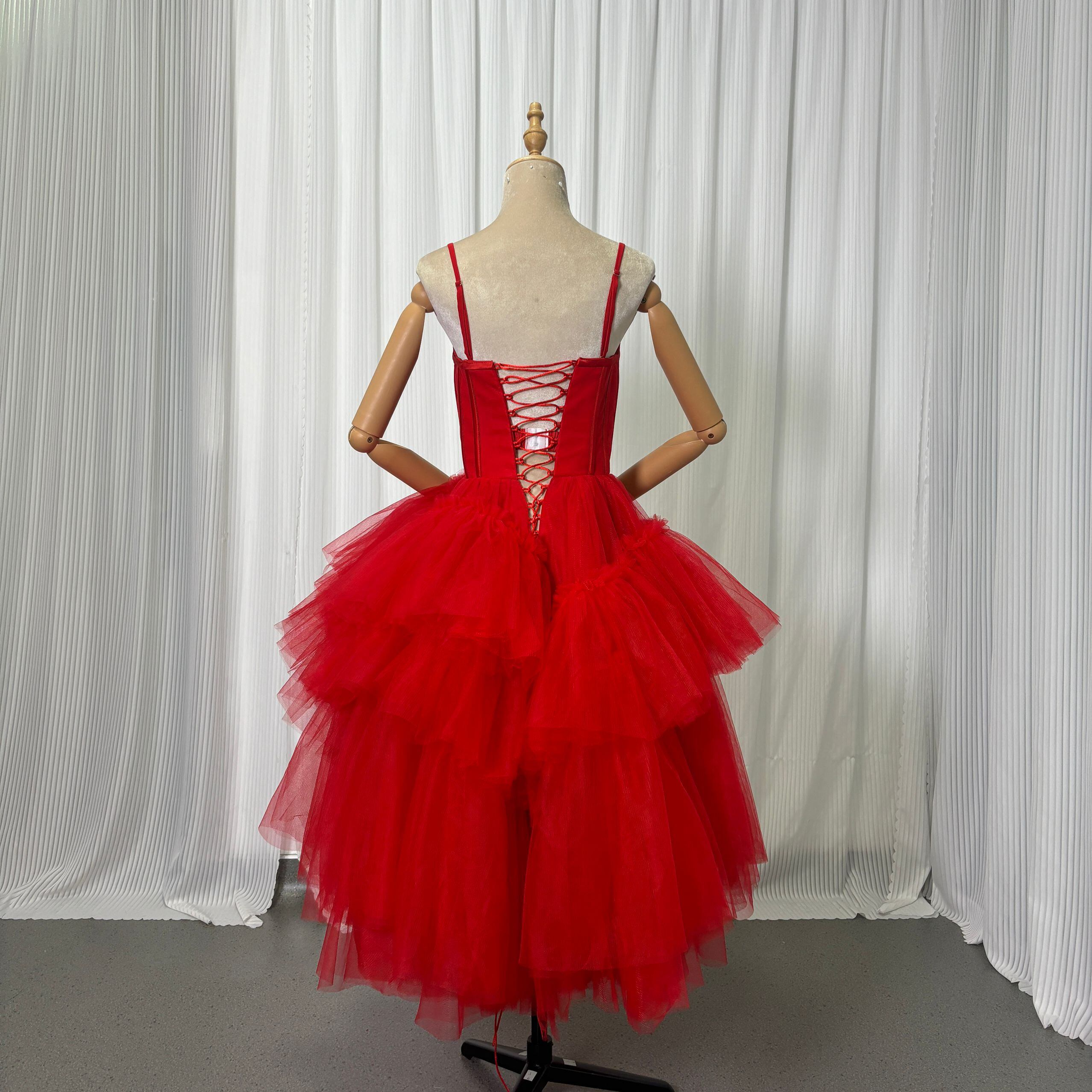 カラードレス 赤 キャミソール 編み上げ アシンメトリードレス ミモレ丈 抜群におしゃれ度が際立つ 前撮り