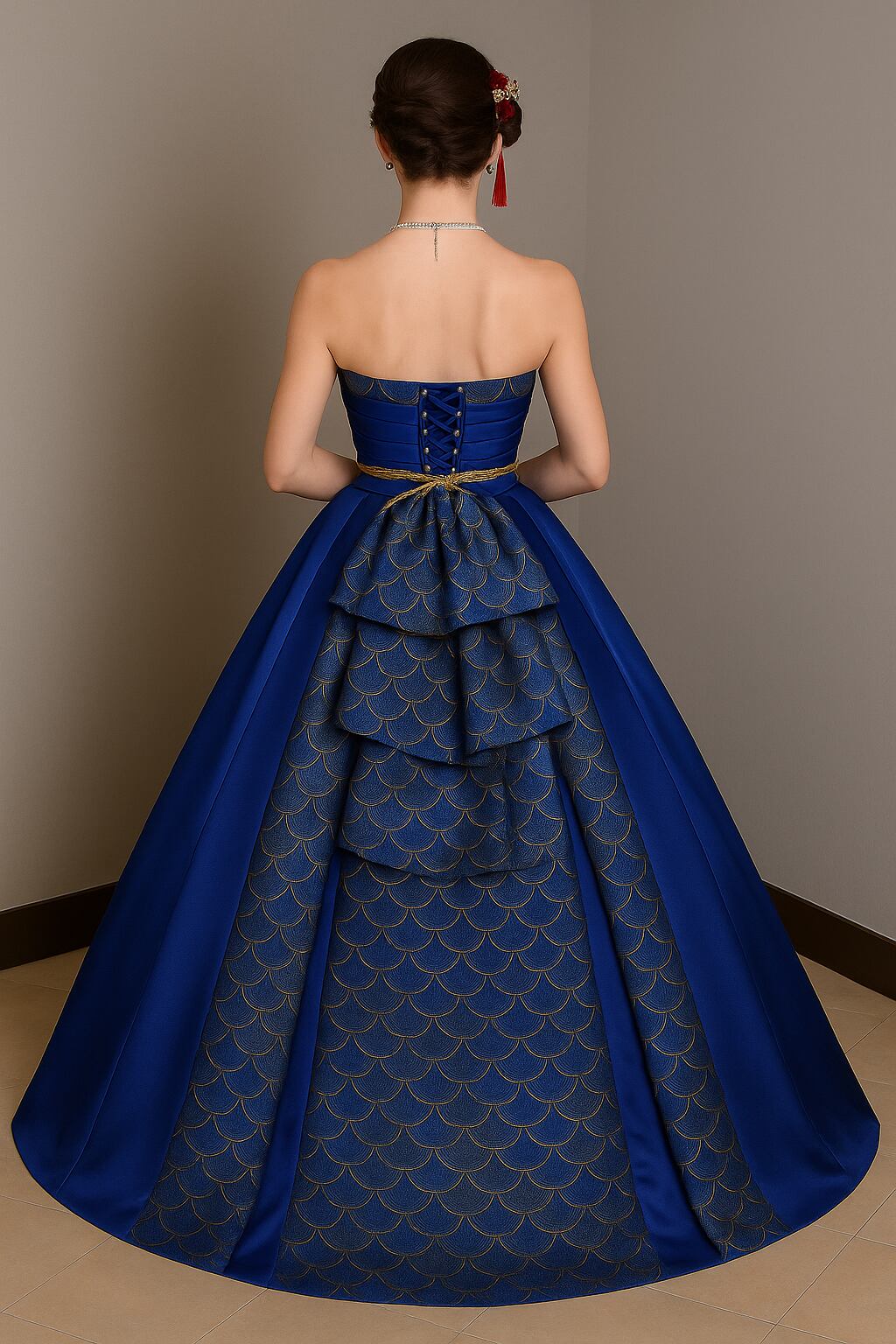 着物ドレス、和風ドレス ネイビー 編み上げ フリルドレス ビスチェドレス アンティーク色 結婚式