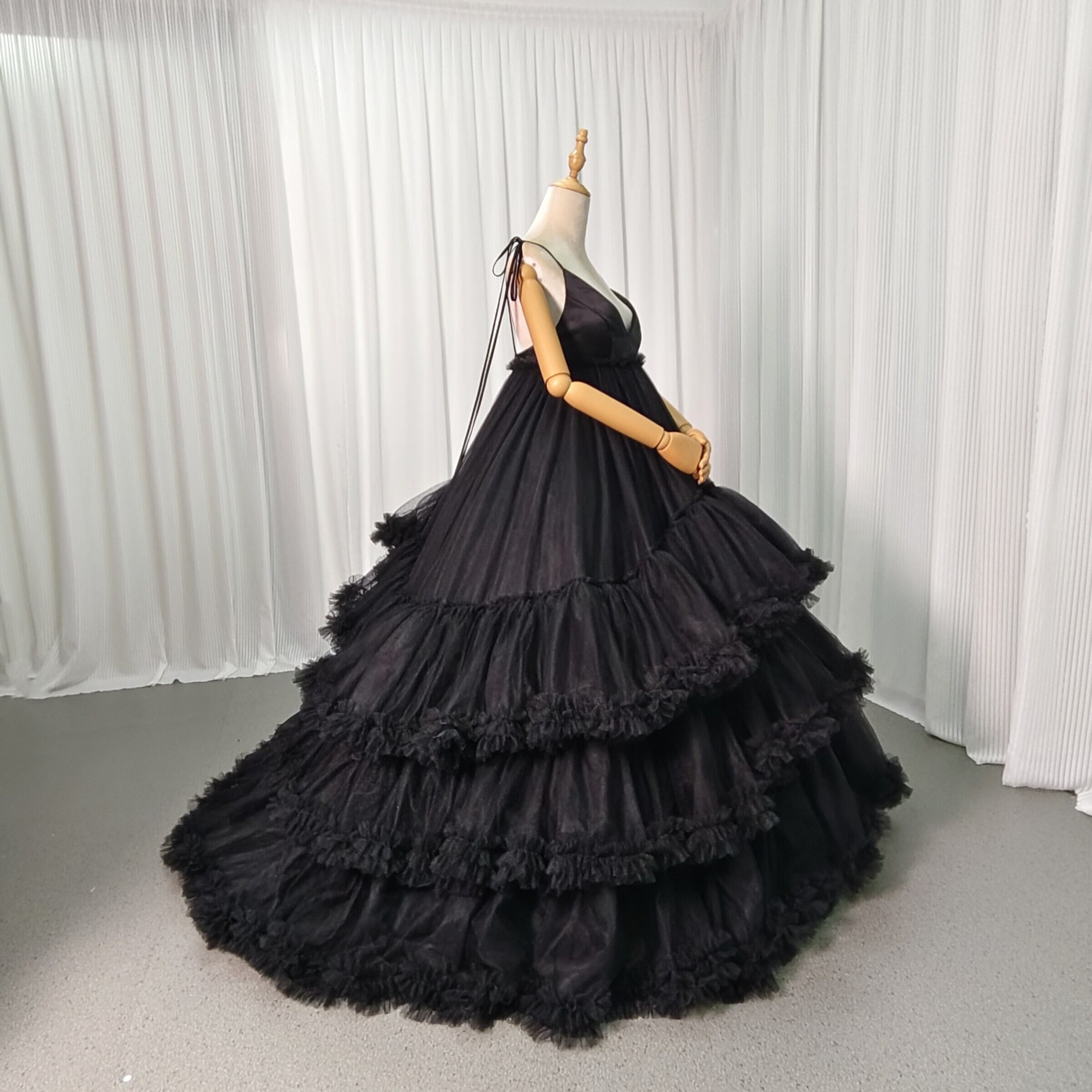 豪華!カラードレス ブラック キャミソール もこもこドレス エンパイアライン 抜群のおしゃれ見え