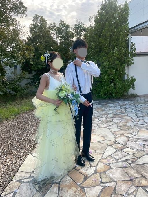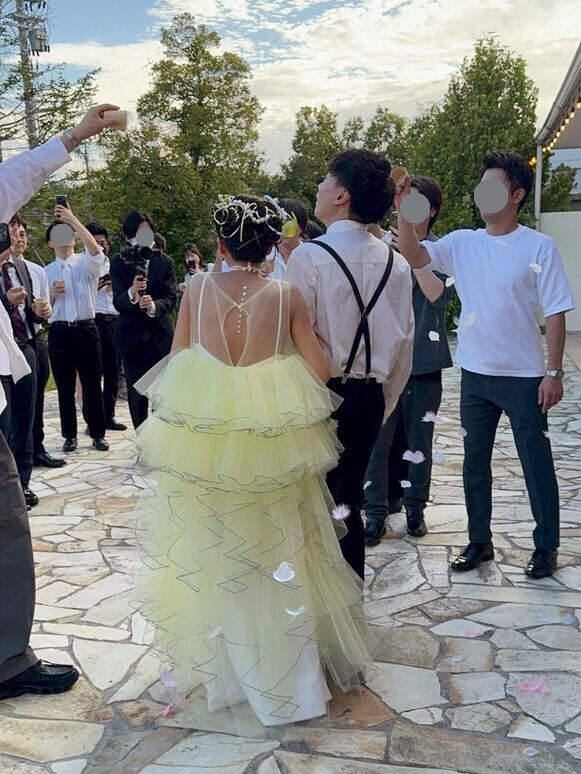 実例写真!イエローカラードレス アシンメトリーフリルドレス 2点セット 二次会 前撮り