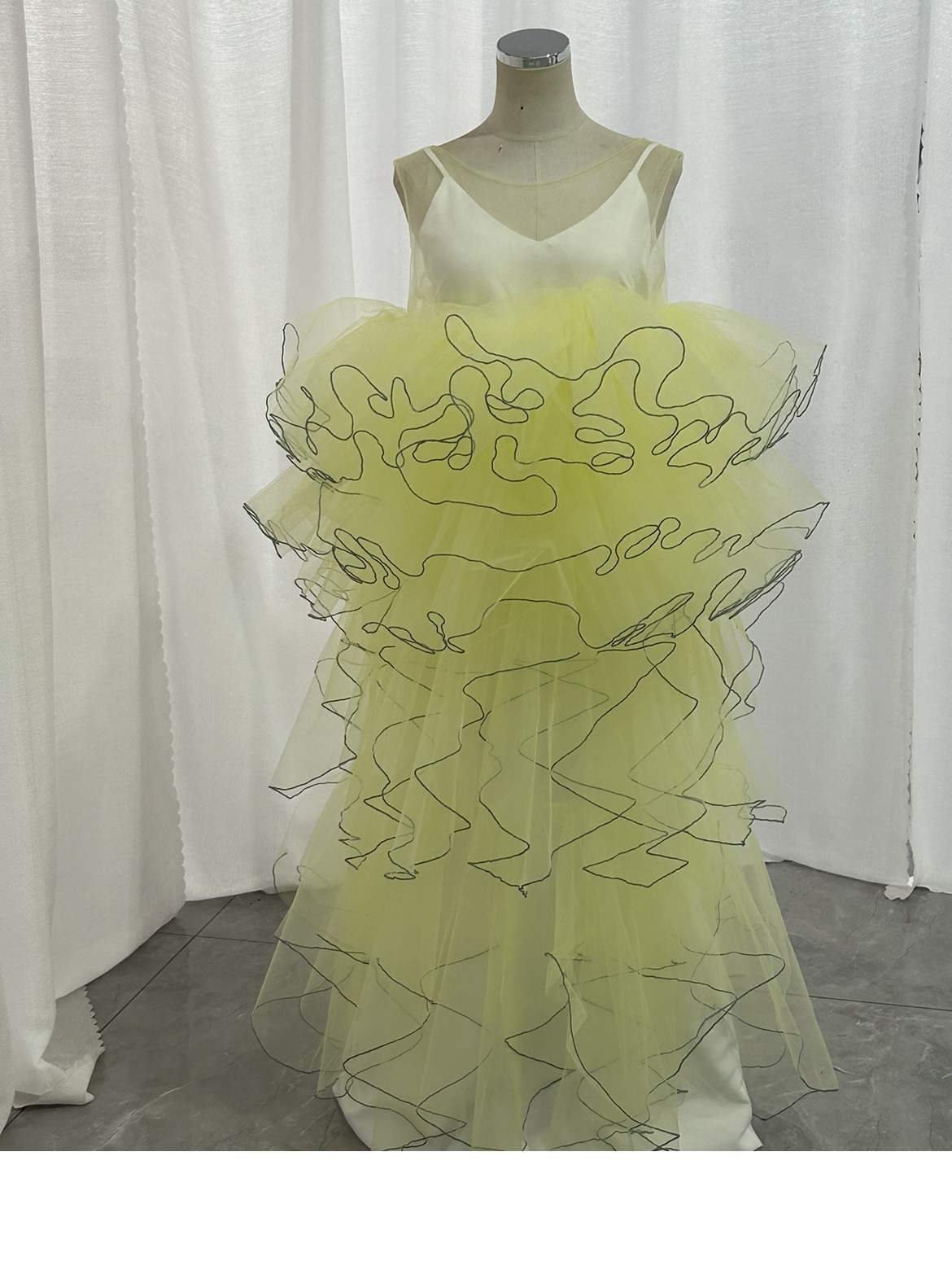 実例写真!パーティードレス キャミソール イエロー ツーピース ノースリーブ ロング デザイン感 2次会