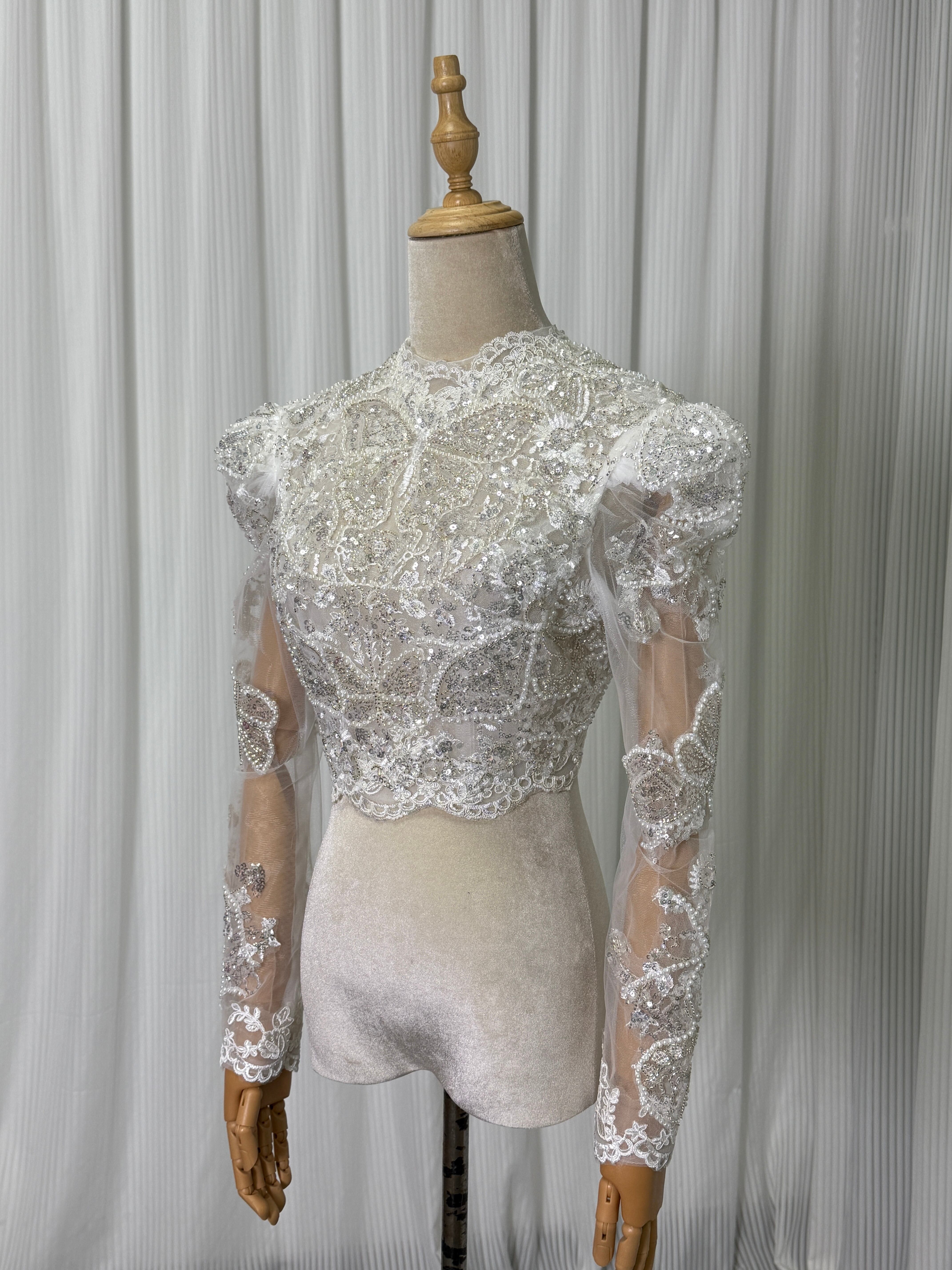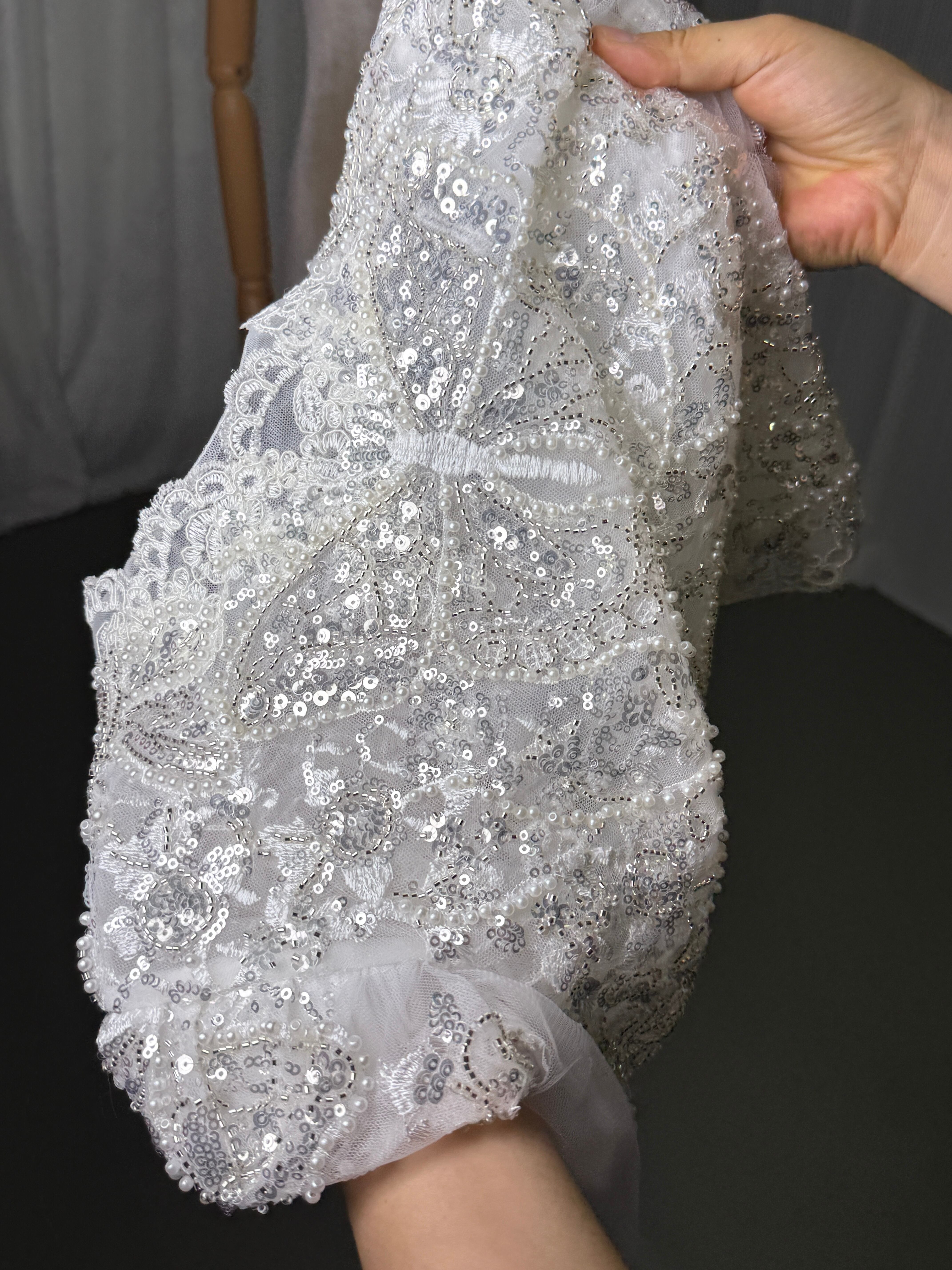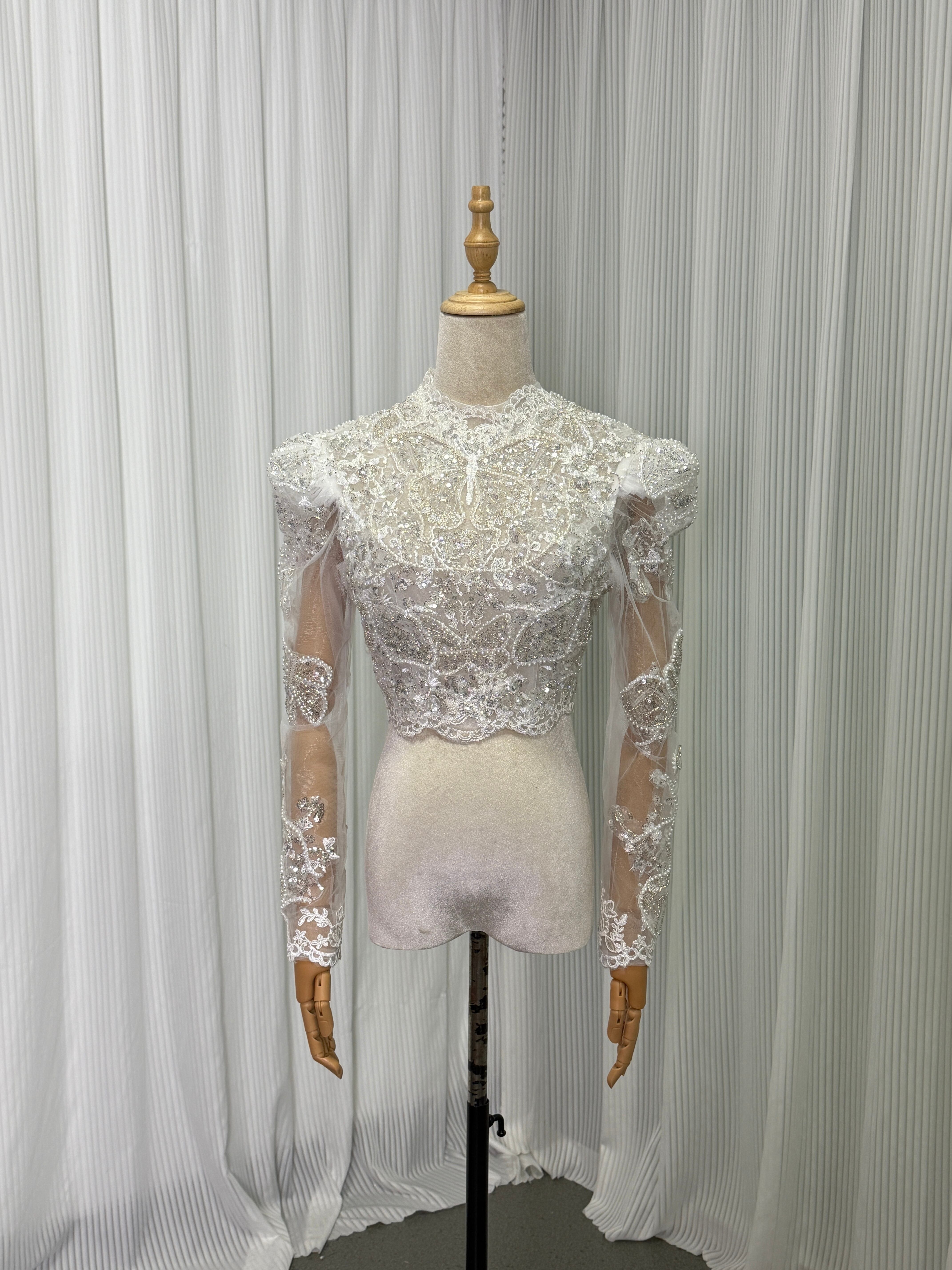 豪華!ボレロ 長袖 キラキラ光る刺繍 キラキラスパンコール 大人っぽい くるみボタン 拳式/前撮り