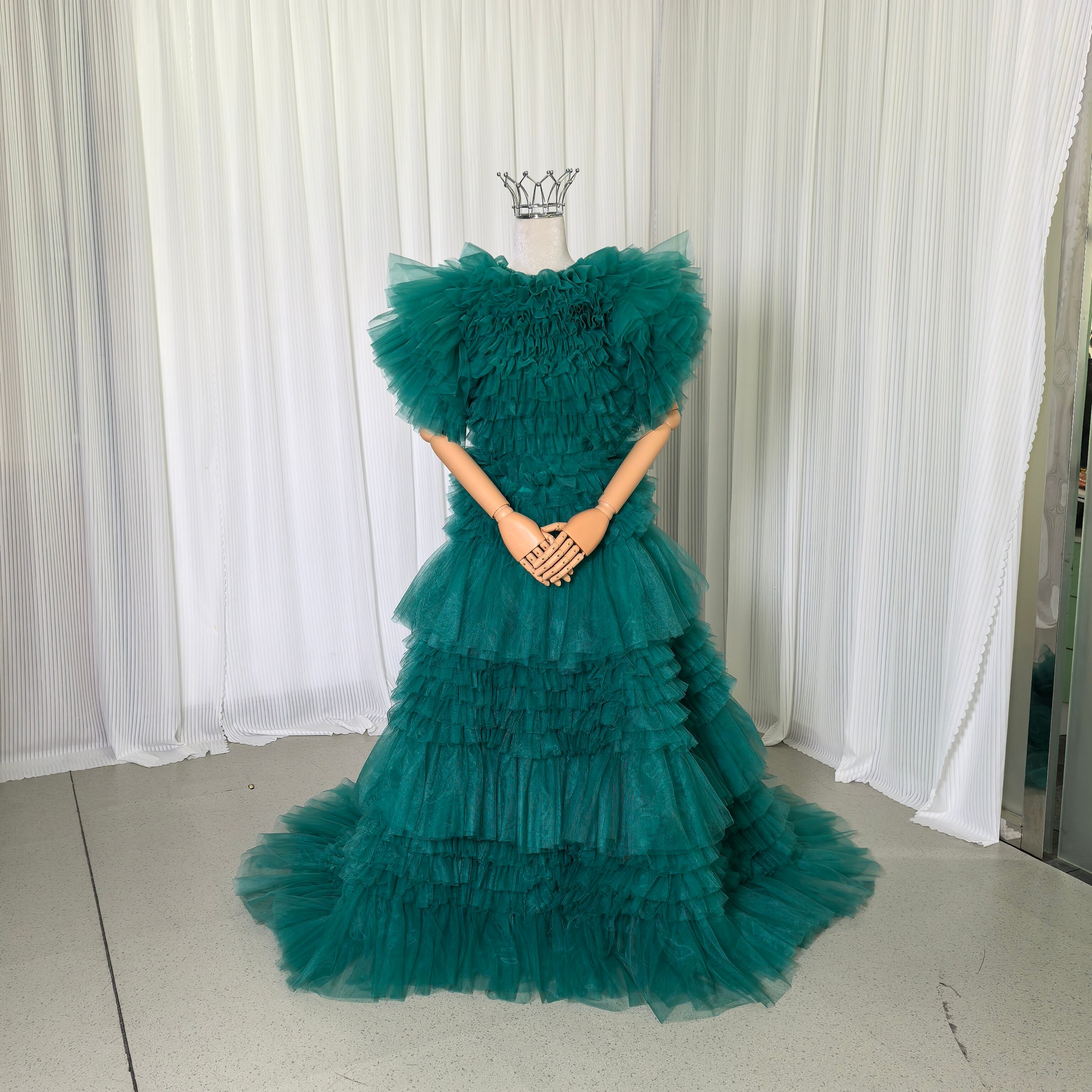 豪華!カラードレス+トップス ブルーグリーン 柔らかく重ねたチュールスカート 短トレー 前撮り 演奏会/音楽会