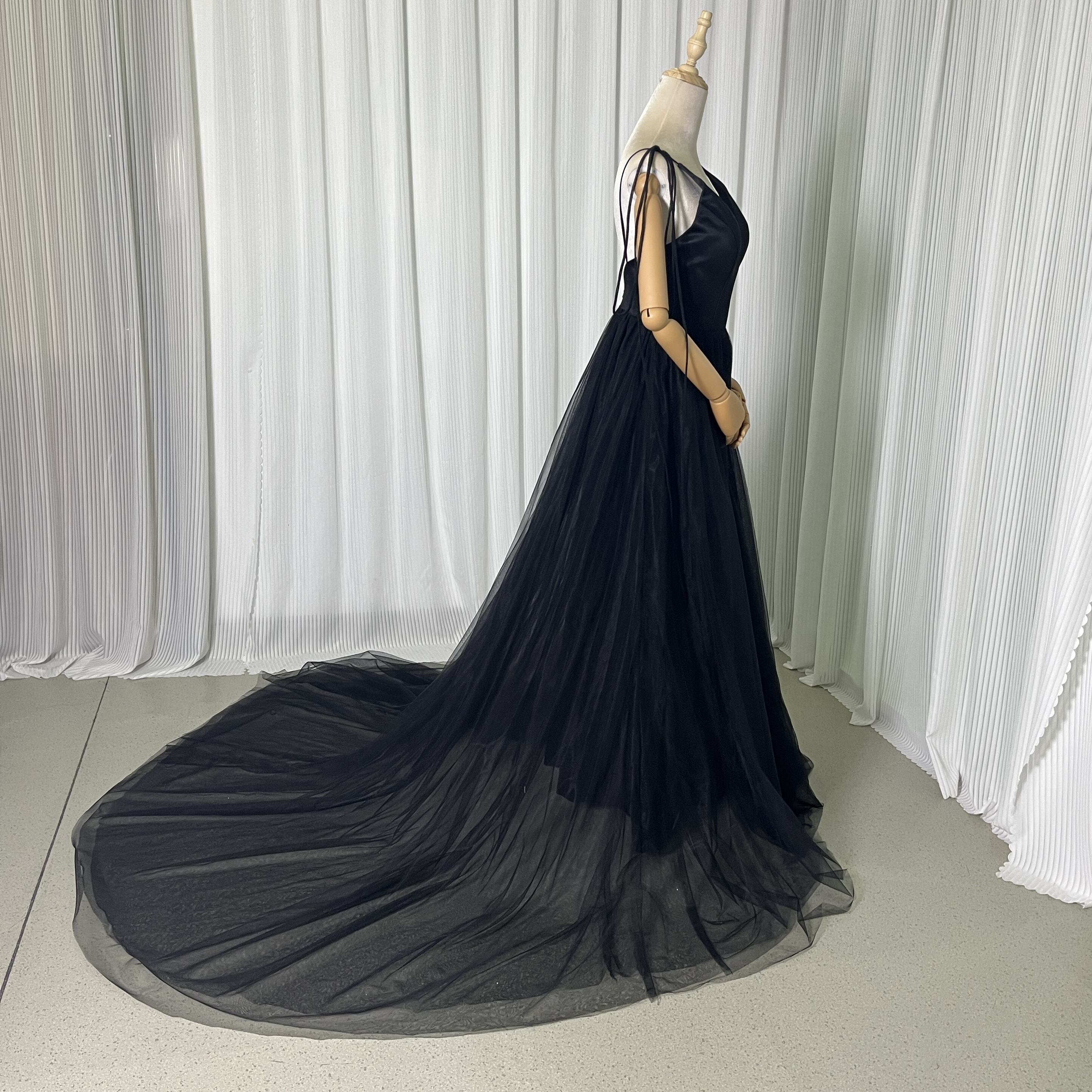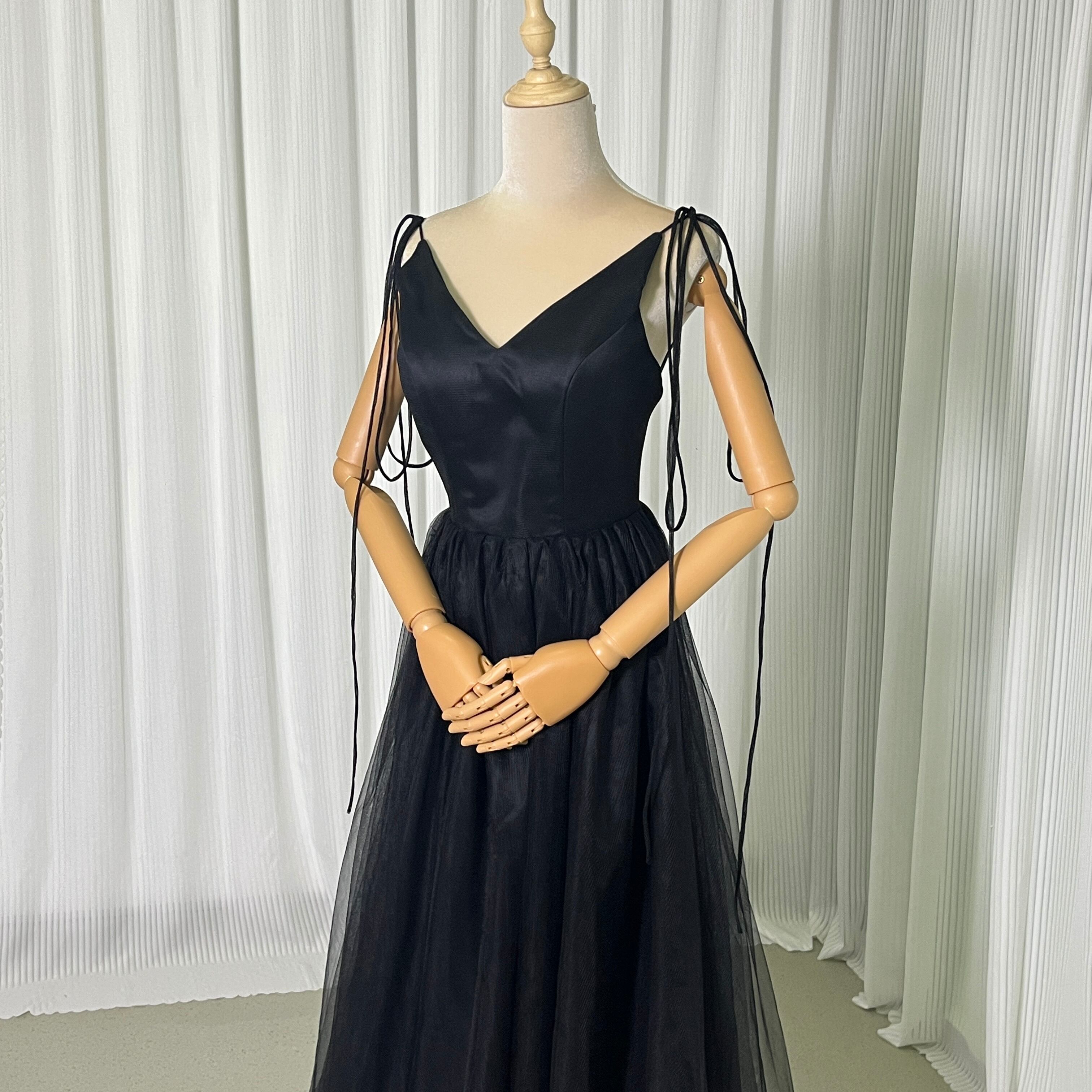 キャミソール ブラック Vネック パーティードレス ソフトチュール 細見えシルエット ファスナー