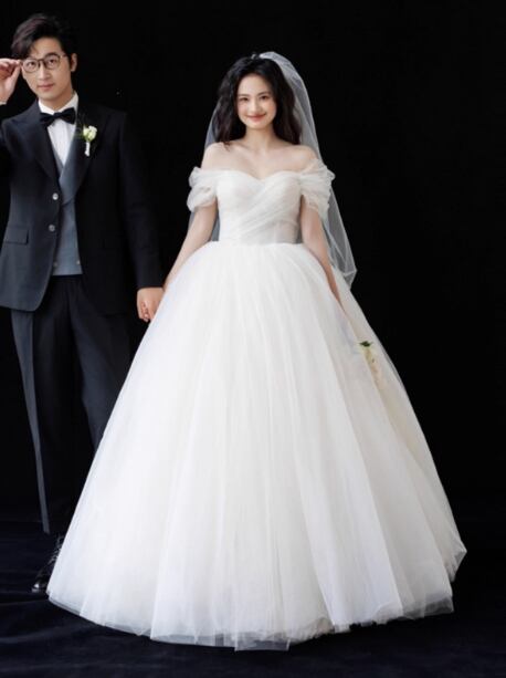ウェディングドレス オフショルダー 大人っぽい ボリュームドレス 結婚式 前撮り