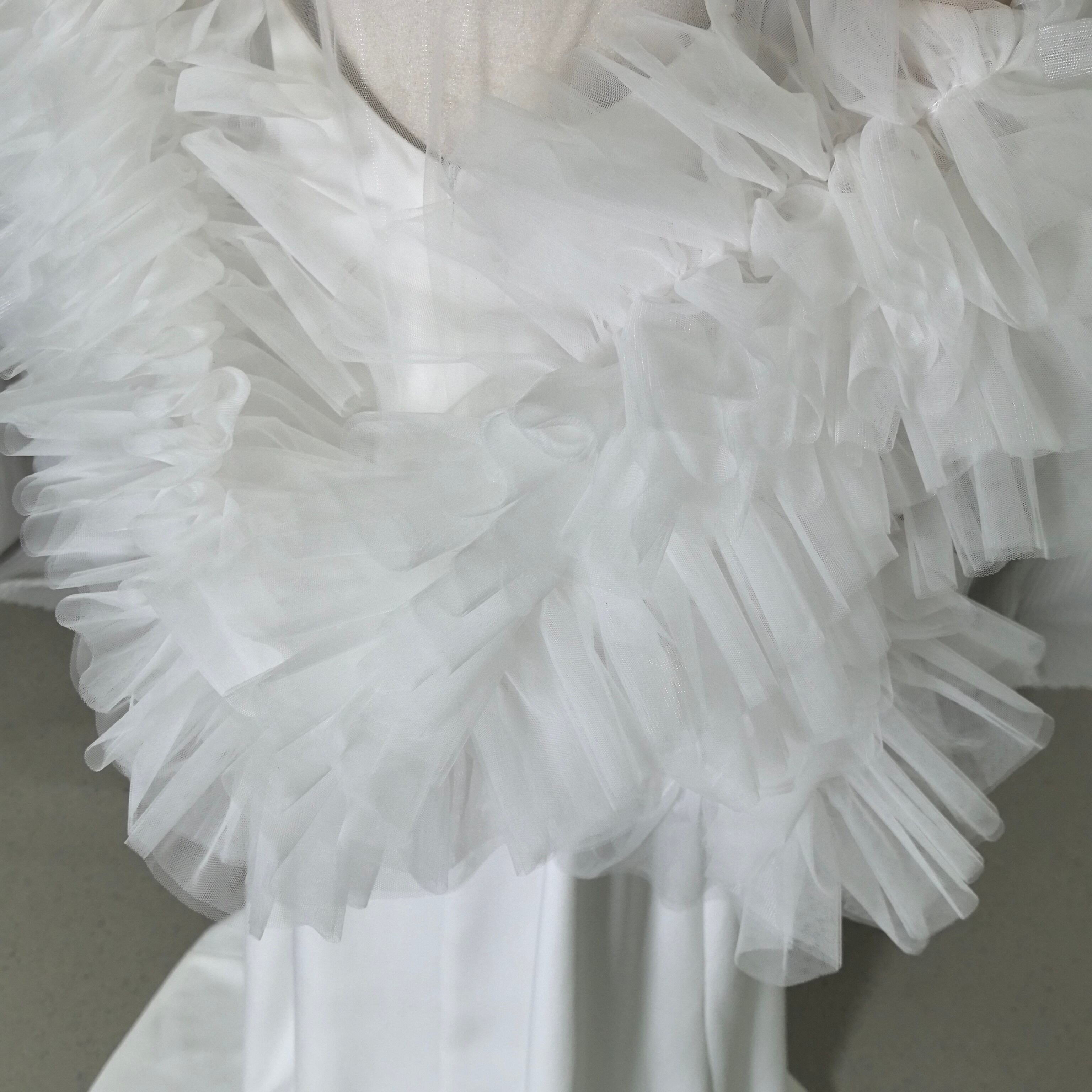 人気上昇!2ways ウエディングドレス+トップス フリル袖 パール スレンダーライン ソフトチュール 背中見せ 前撮り