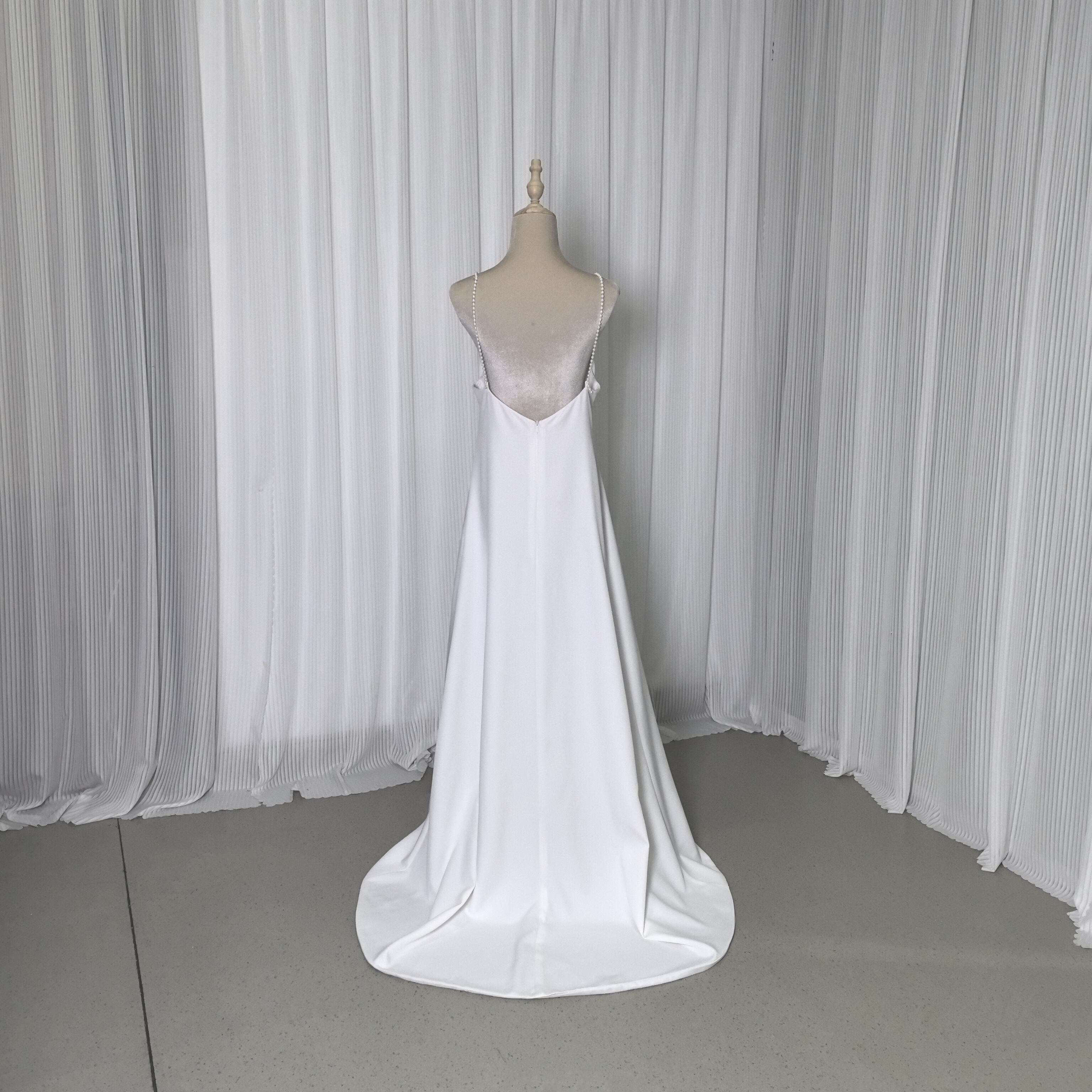 エレガント ウエディングドレス パール スレンダーライン パーティードレス 背中見せ 前撮り