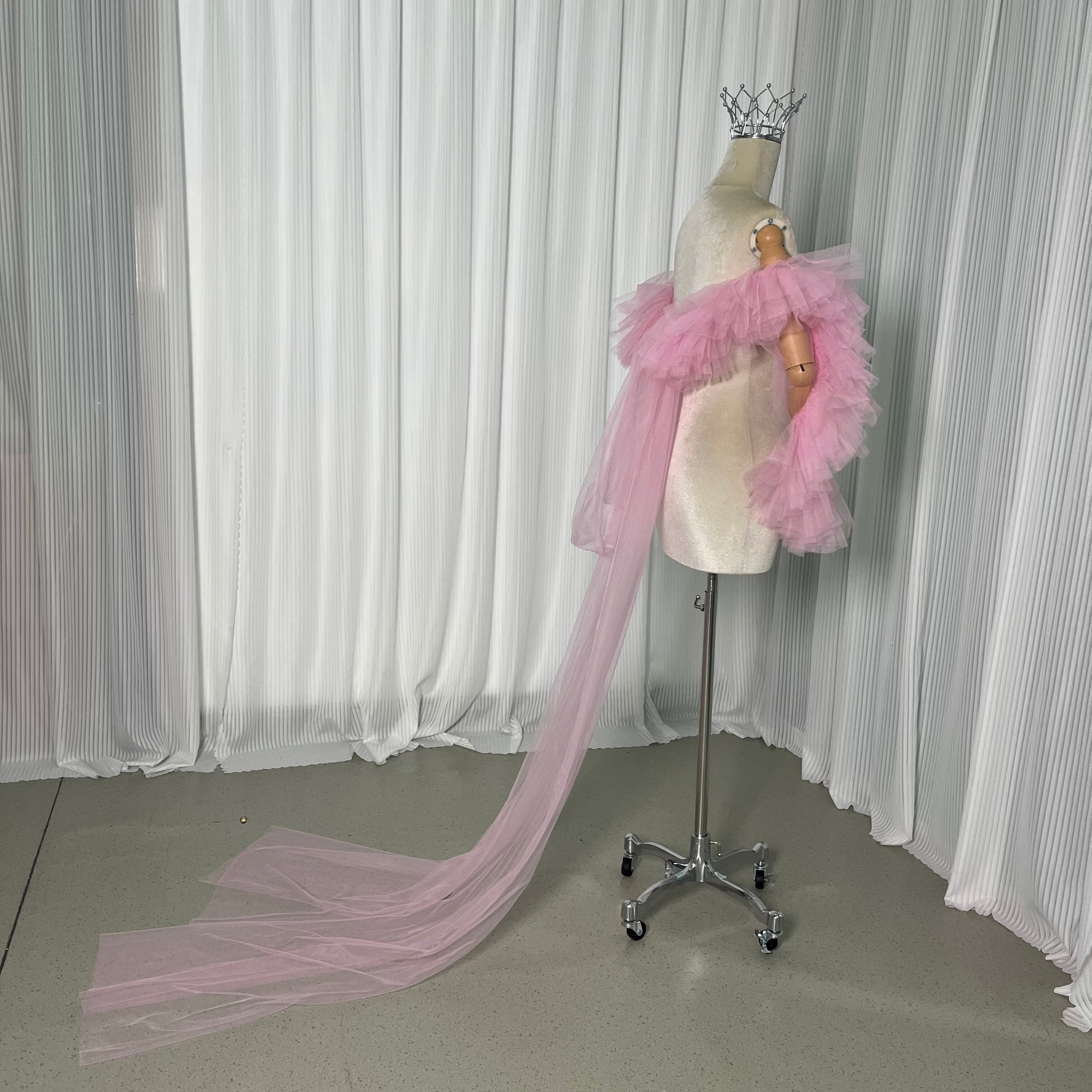 可愛い ドレスアレンジ用トップスのみ ボレロ ピンク ソフトチュール ベール風ポンチョ 花嫁