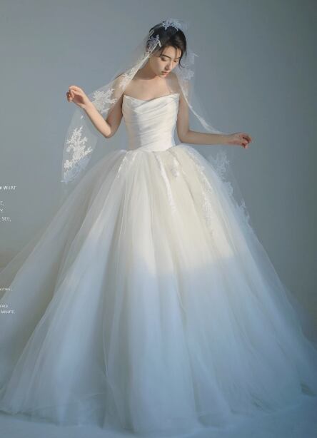 ウエディングドレス ベアトップ プリンセスライン 憧れのドレス ボリュームドレス 拳式/前撮り