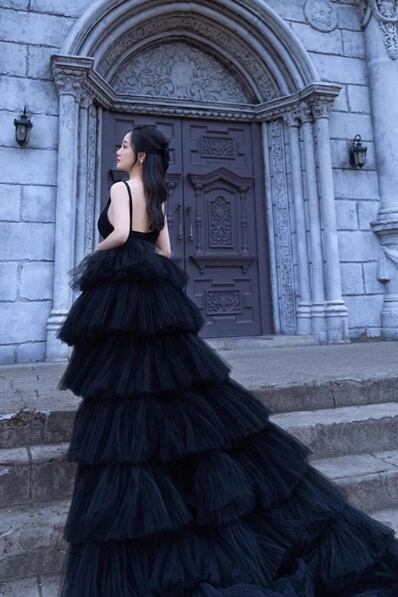 パーティードレス ブラック Vネック キャミソール フィッシュテール 大人っぽい デザイン感 前撮り