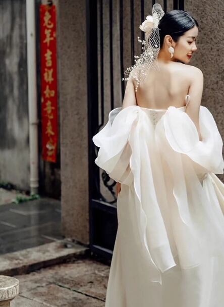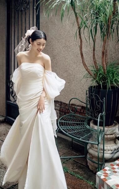 ウエディングドレス ドロップショルダー 優雅なシルエット スリット 優しい 披露宴