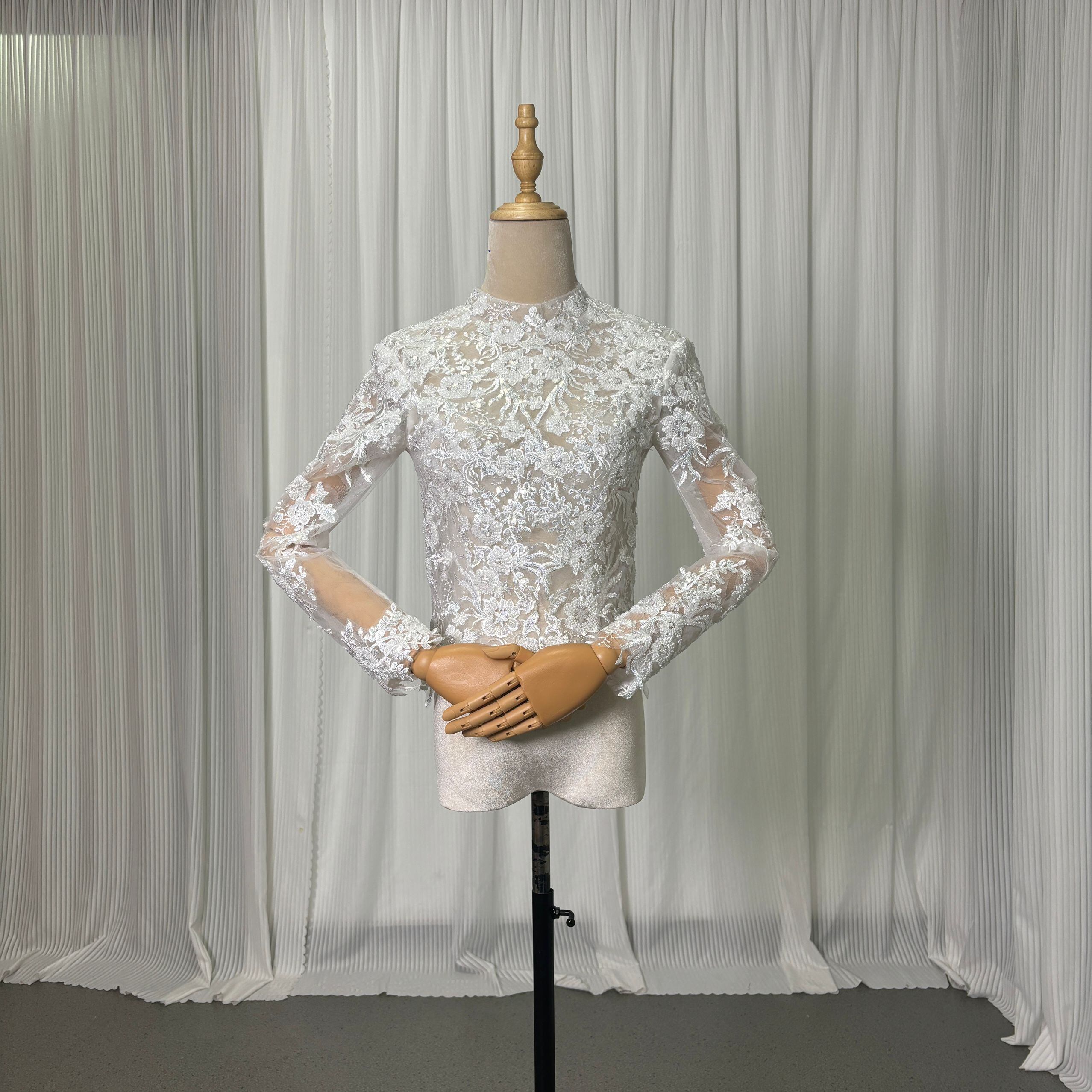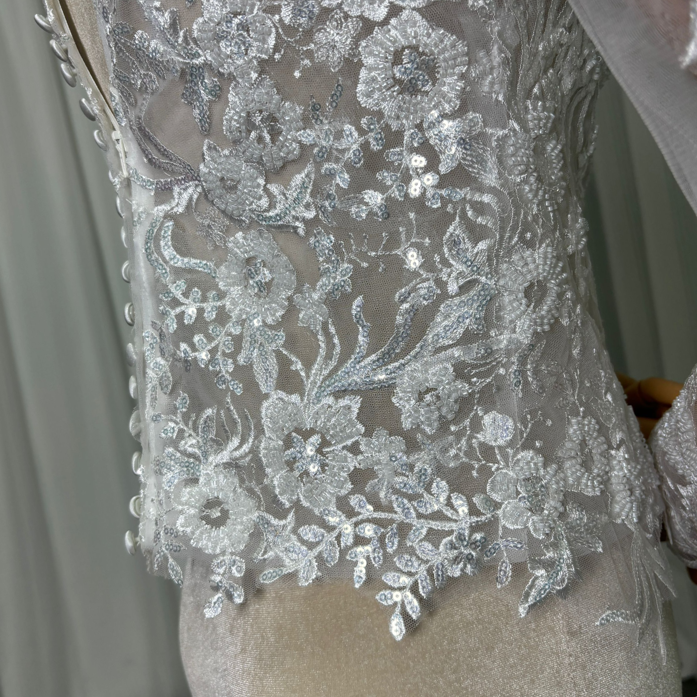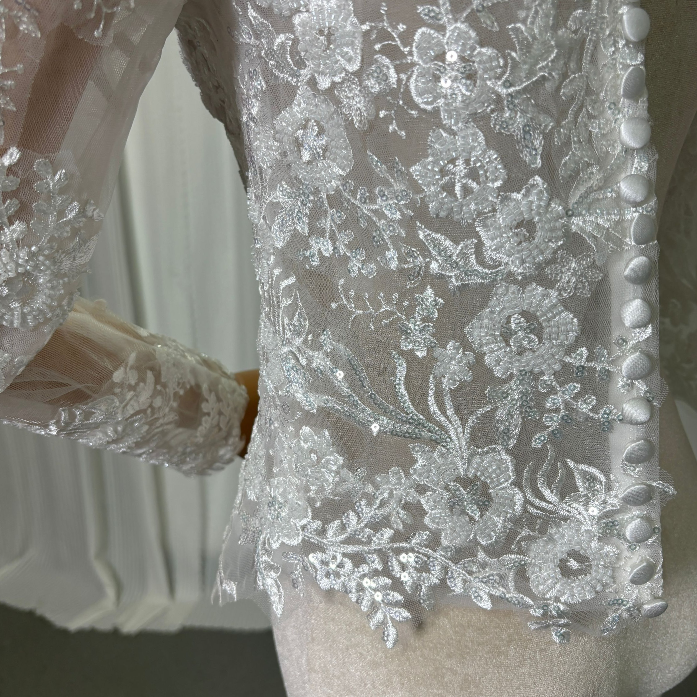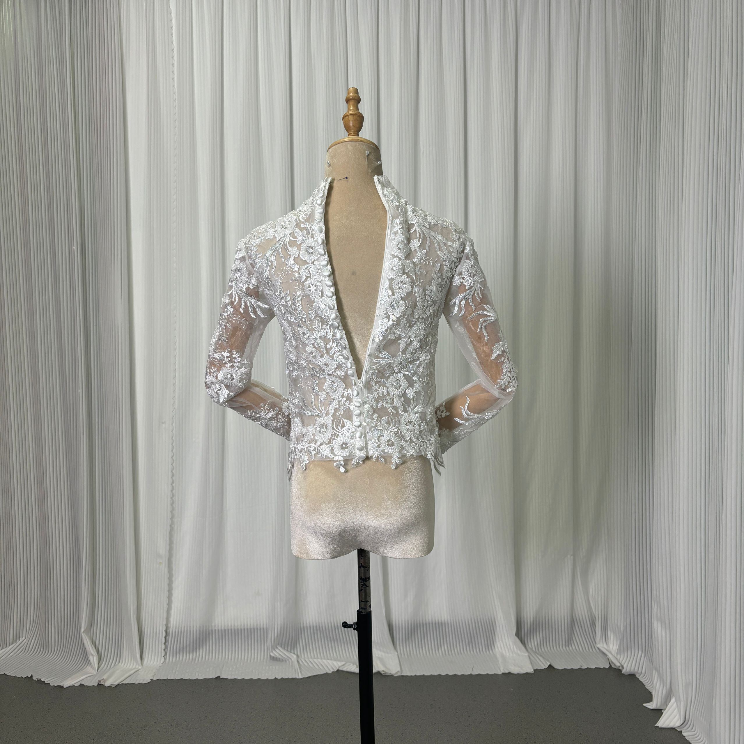 ボレロ ロングスリーブ くるみボタン キラキラ光る刺繍 オフホワイト 結婚式