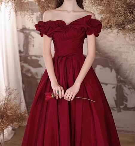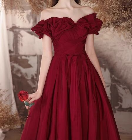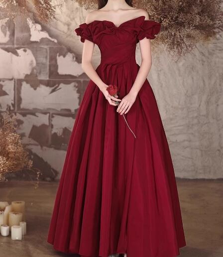 カラードレス ワインレッド オフショルダー 胸元フリル 編み上げ 披露宴