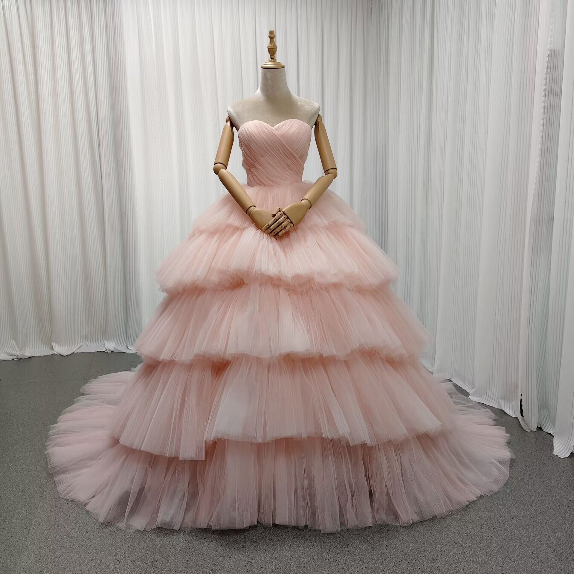大好評中!カラードレス 薄ピンク 取り外しオフショルダー プリーツスカート 披露宴 花嫁