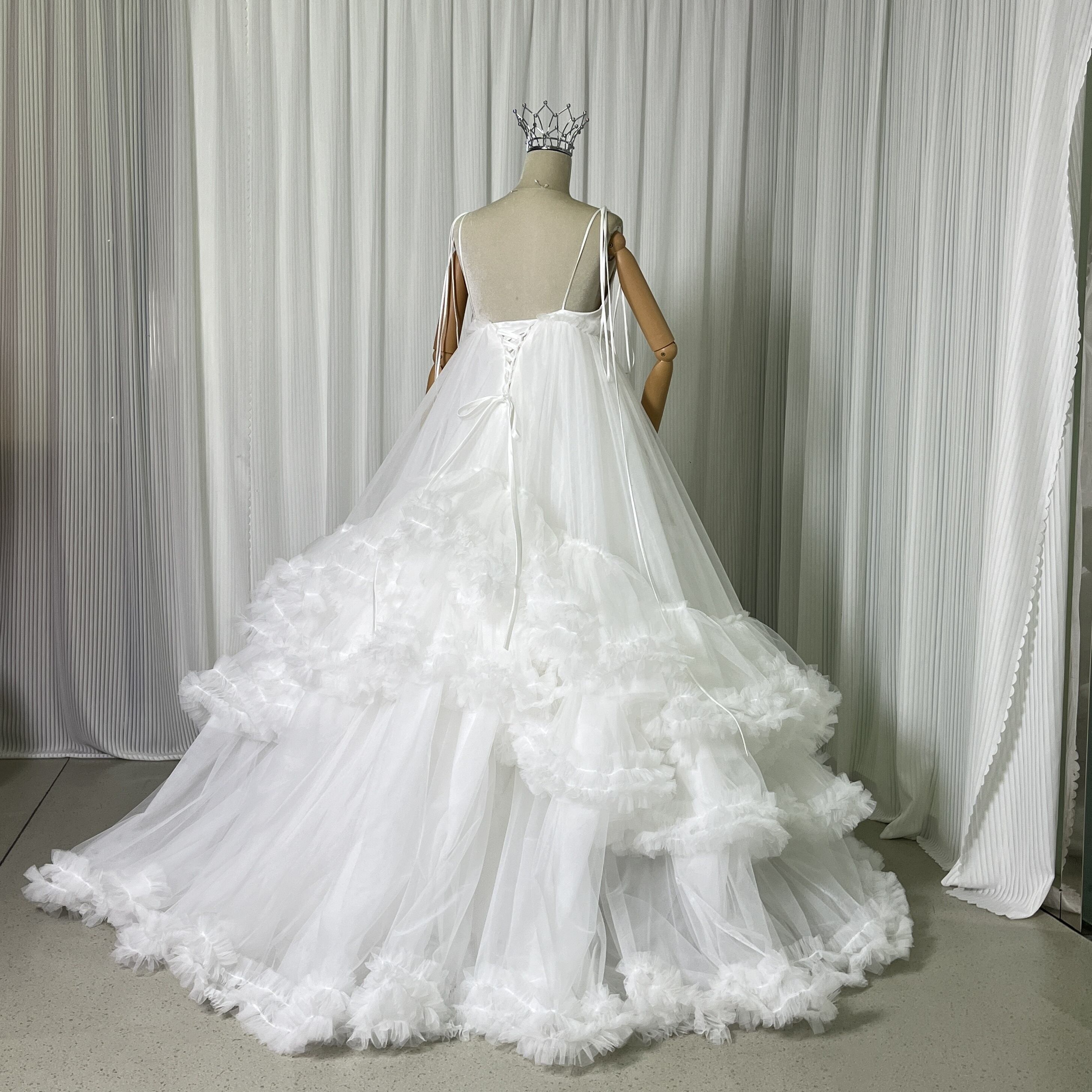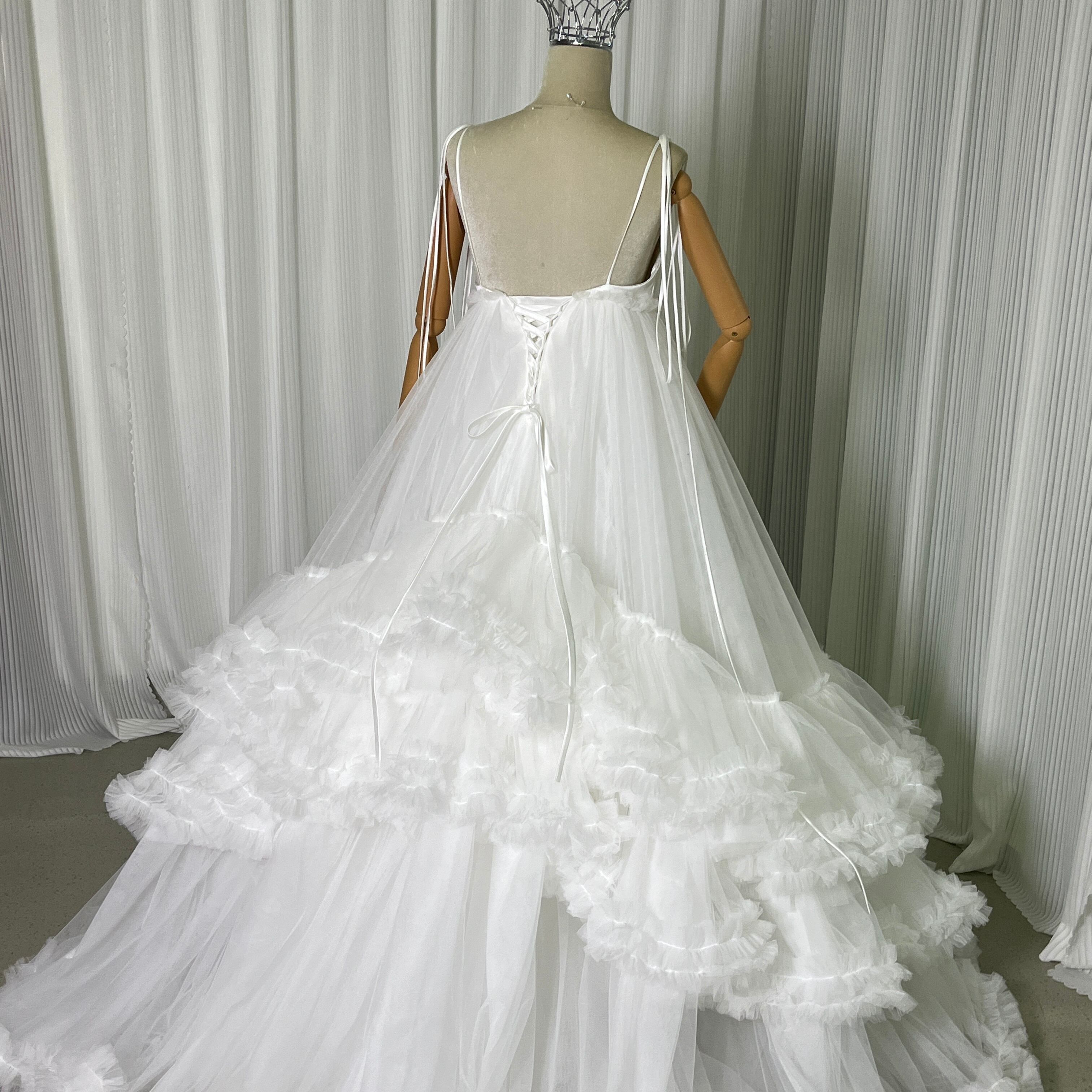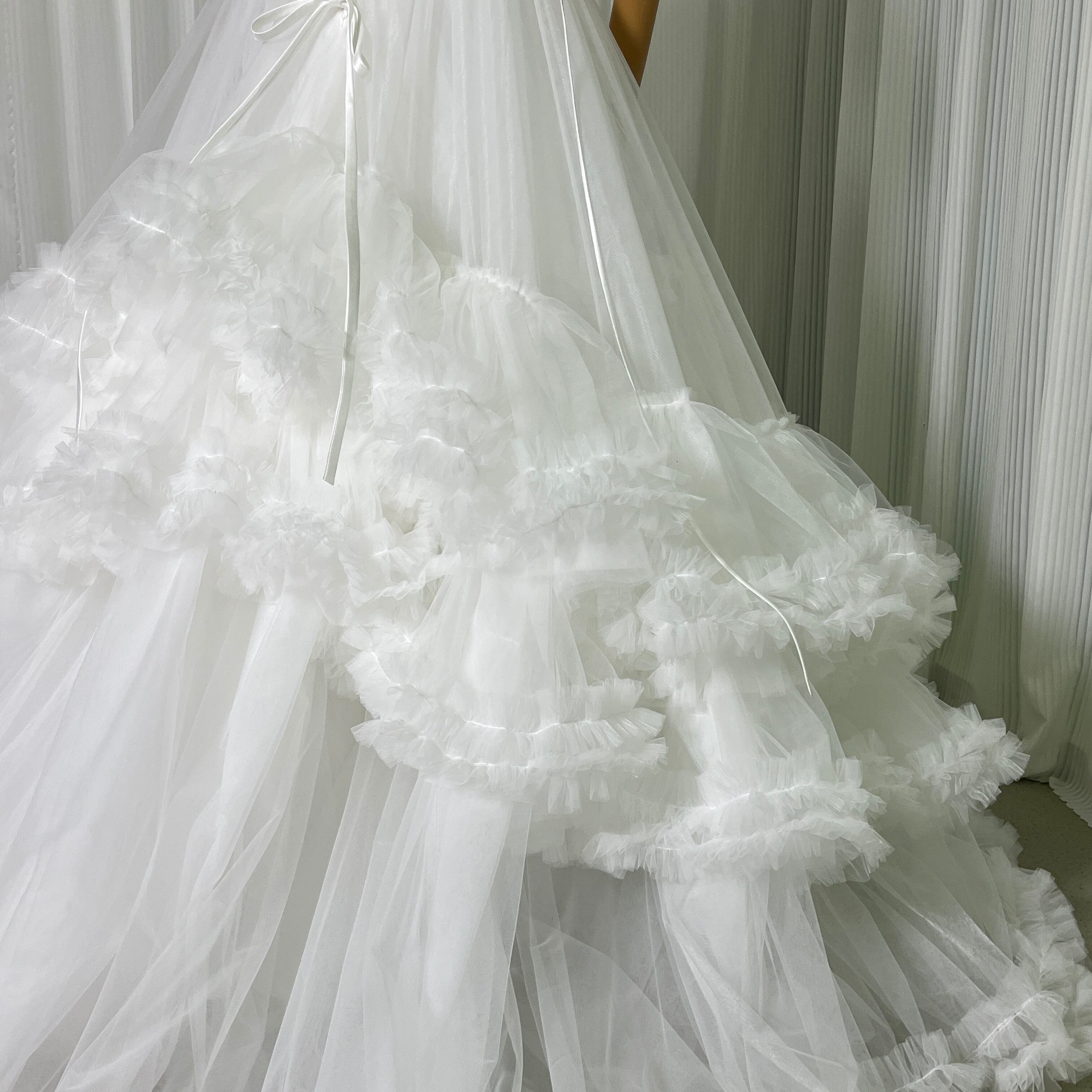 抜群のおしゃれ見え ウエディングドレス ラッフルフリル キャミソール ボリュームドレス 編み上げ 花嫁 前撮り