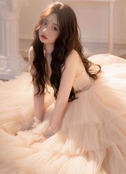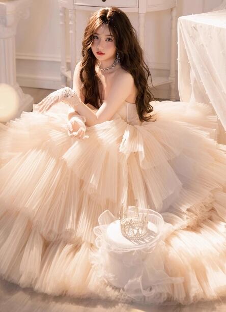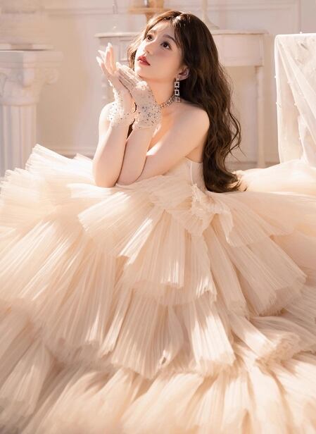 ウェディングドレス ベアトップ プリーツスカート ボリュームドレス 可愛い 前撮り