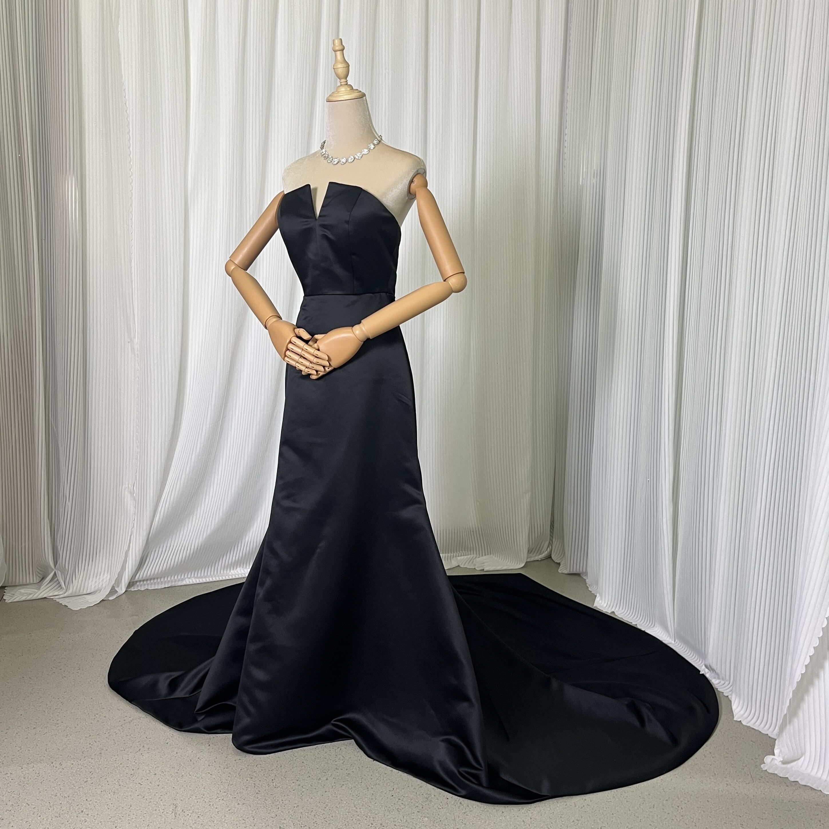パーティードレス ブラック ベアトップ マーメイドライン ロングトレーン 編み上げ 演奏会/音楽会