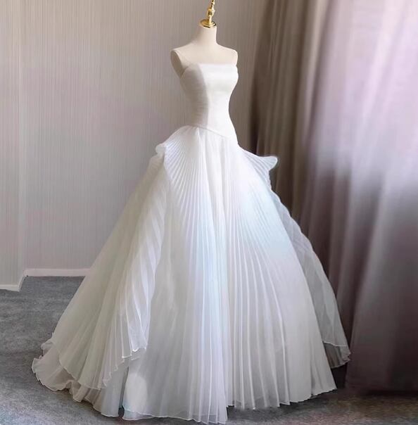 ウェディングドレス ベアトップ プリーツスカート プリンセスライン 憧れのドレス 結婚式