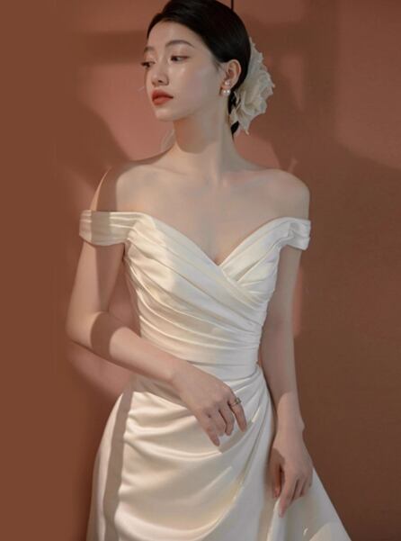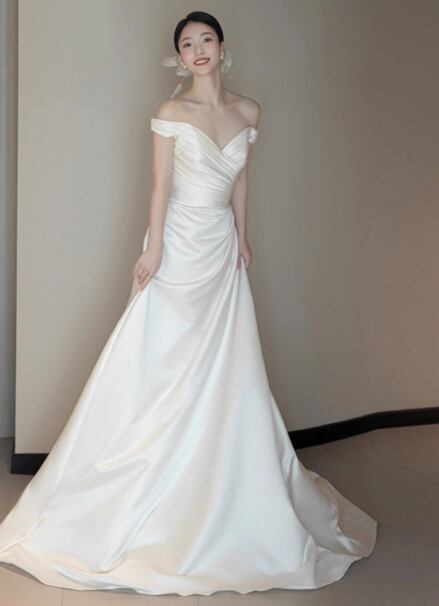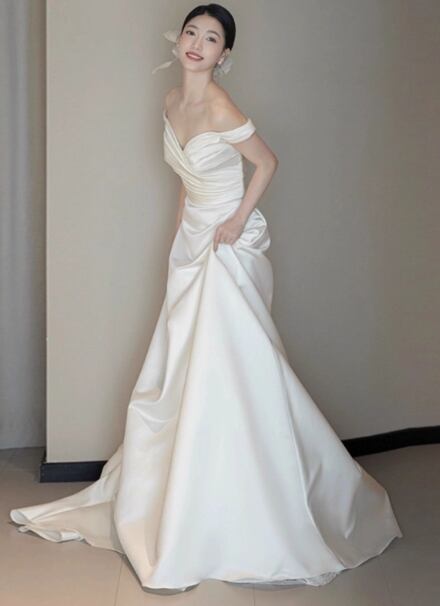 ウェディングドレス オフショルダー 優雅なシルエット ハンドドレープ 拳式/前撮り