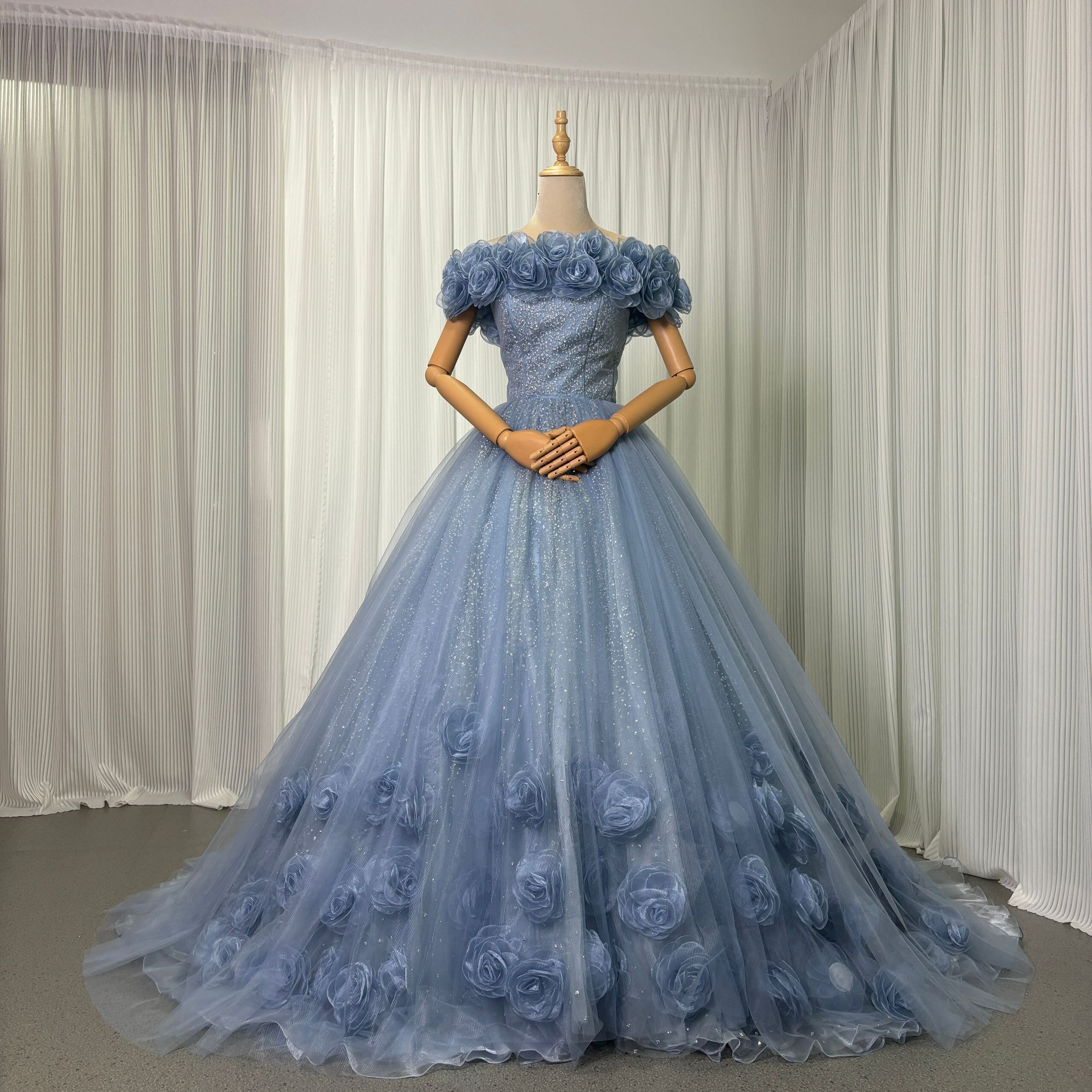 カラードレス ブルーグレー オフショルダー キラキラドレス バラトレーン 編み上げ リボン 結婚式 花嫁