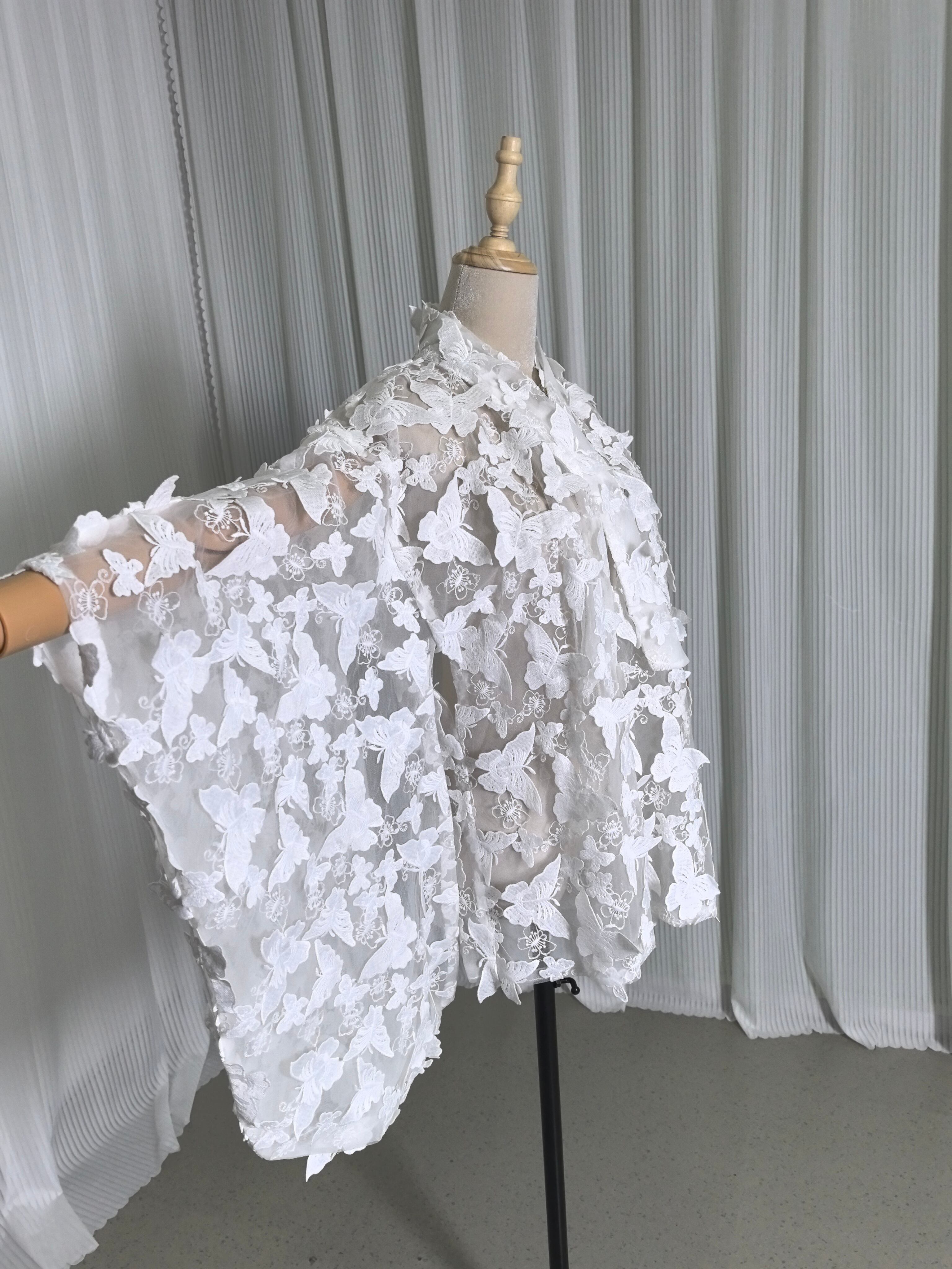 オーバードレス 子供用 チュール打掛 着物 レース羽織 お色直し 3D立体レース刺繍