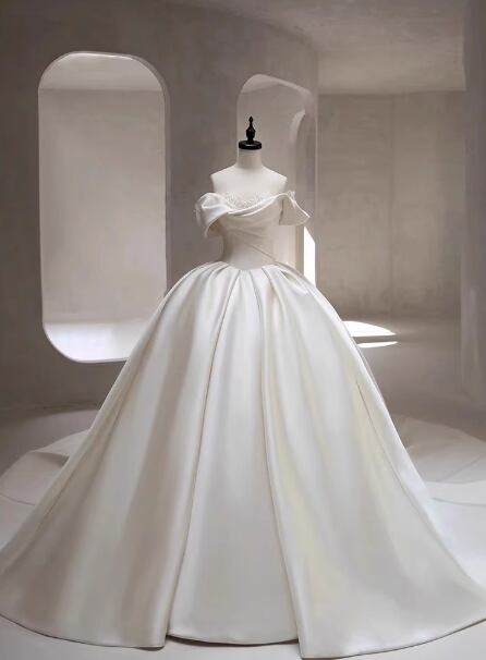 ウェディングドレス オフショルダー プリンセスライン ロングトレーン 大人っぽい 拳式