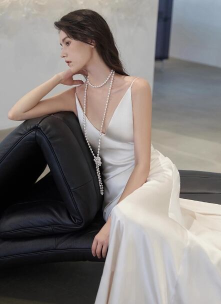 ウエディングドレス Vネック 優雅なシルエット キャミソール 背中見せ 二次会 発表会