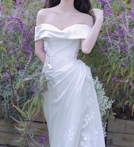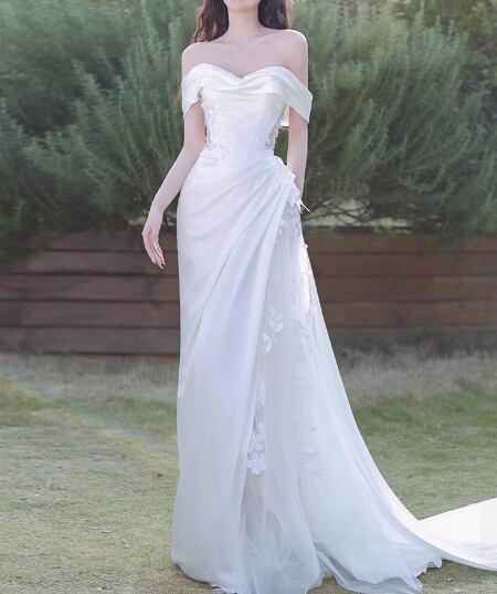 ウェディングドレス オフショルダー 繊細レース 可愛い 抜群のおしゃれ見え 前撮り