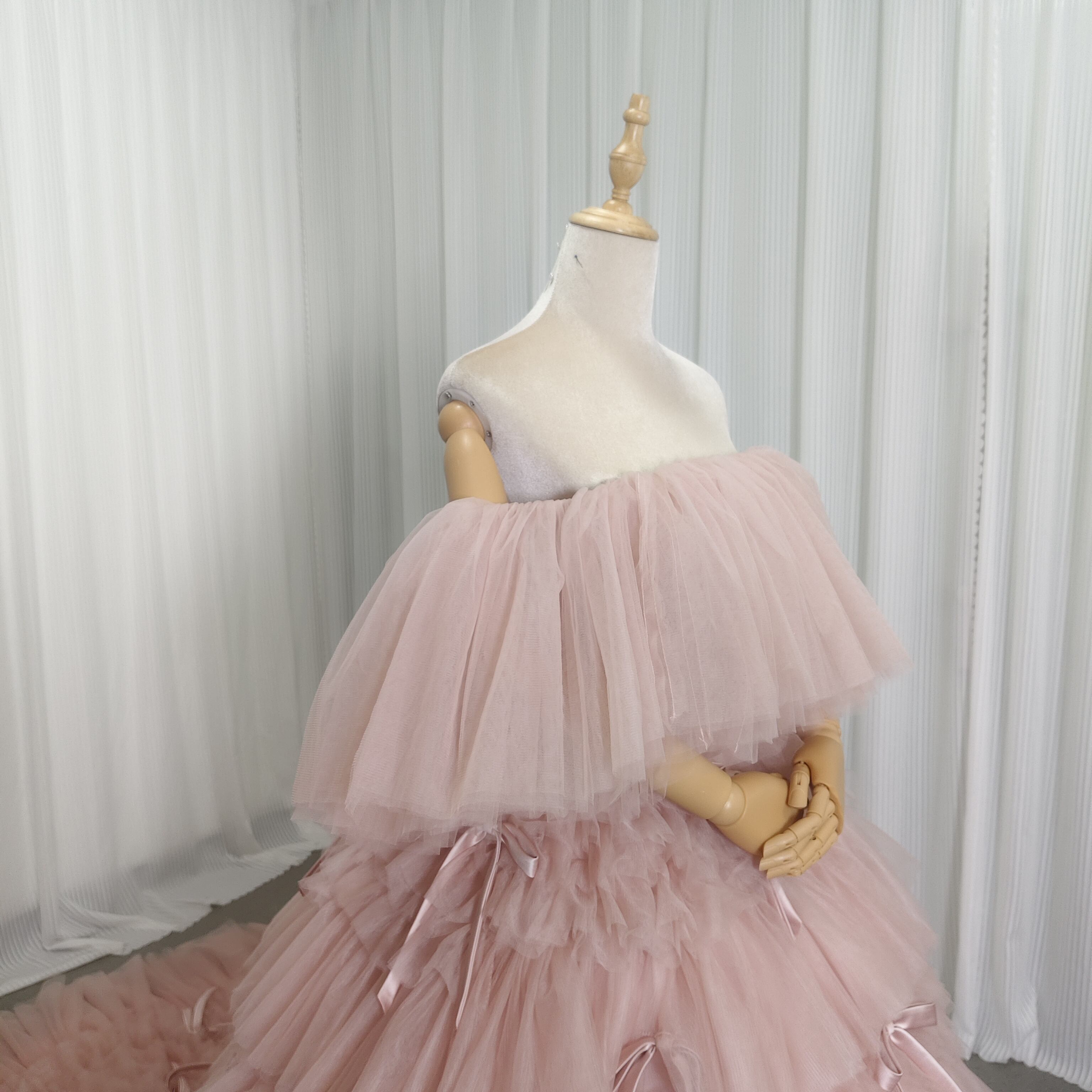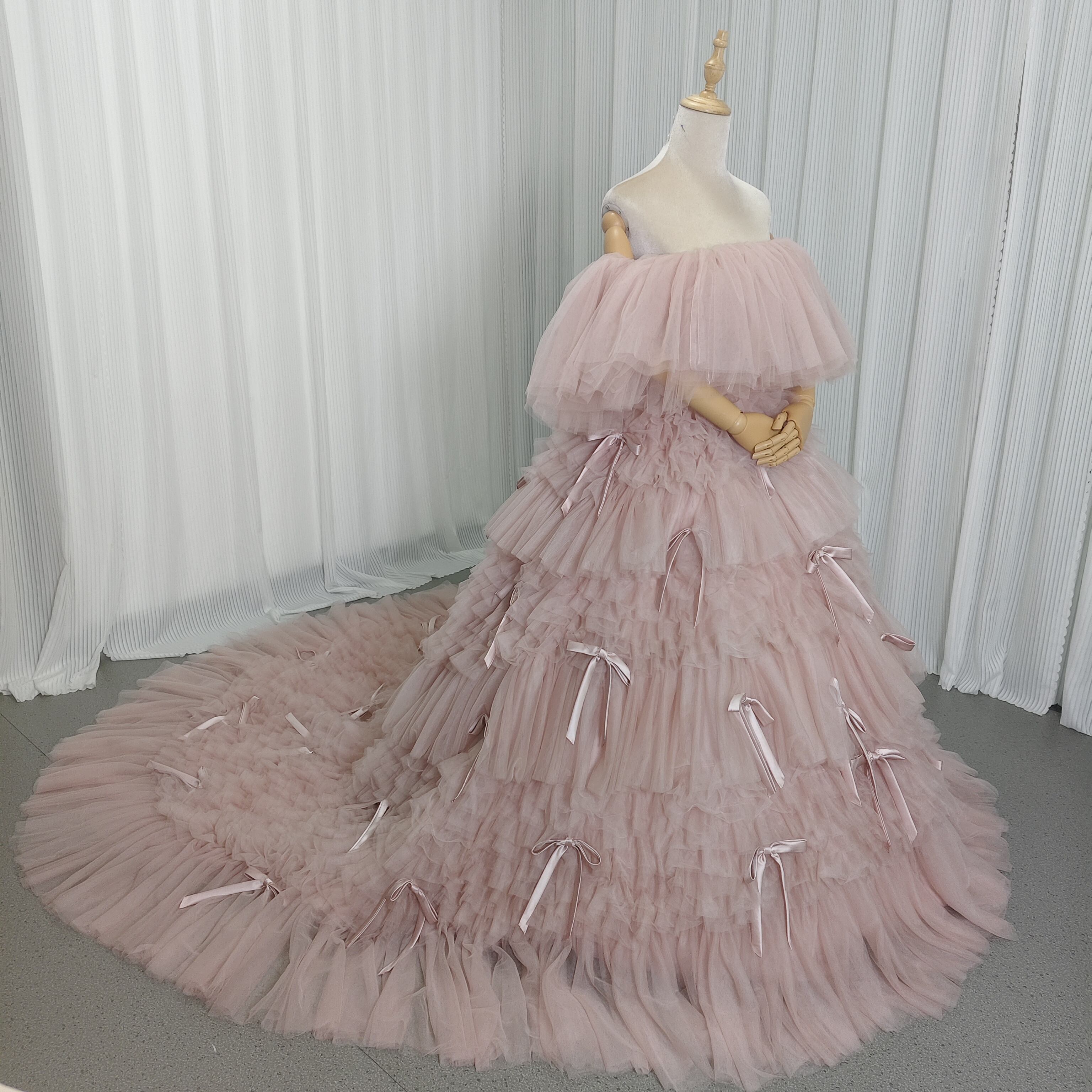 人気上昇!カラードレス 薄ピンク オフショルダー リボン 憧れのドレス 可愛い 前撮り