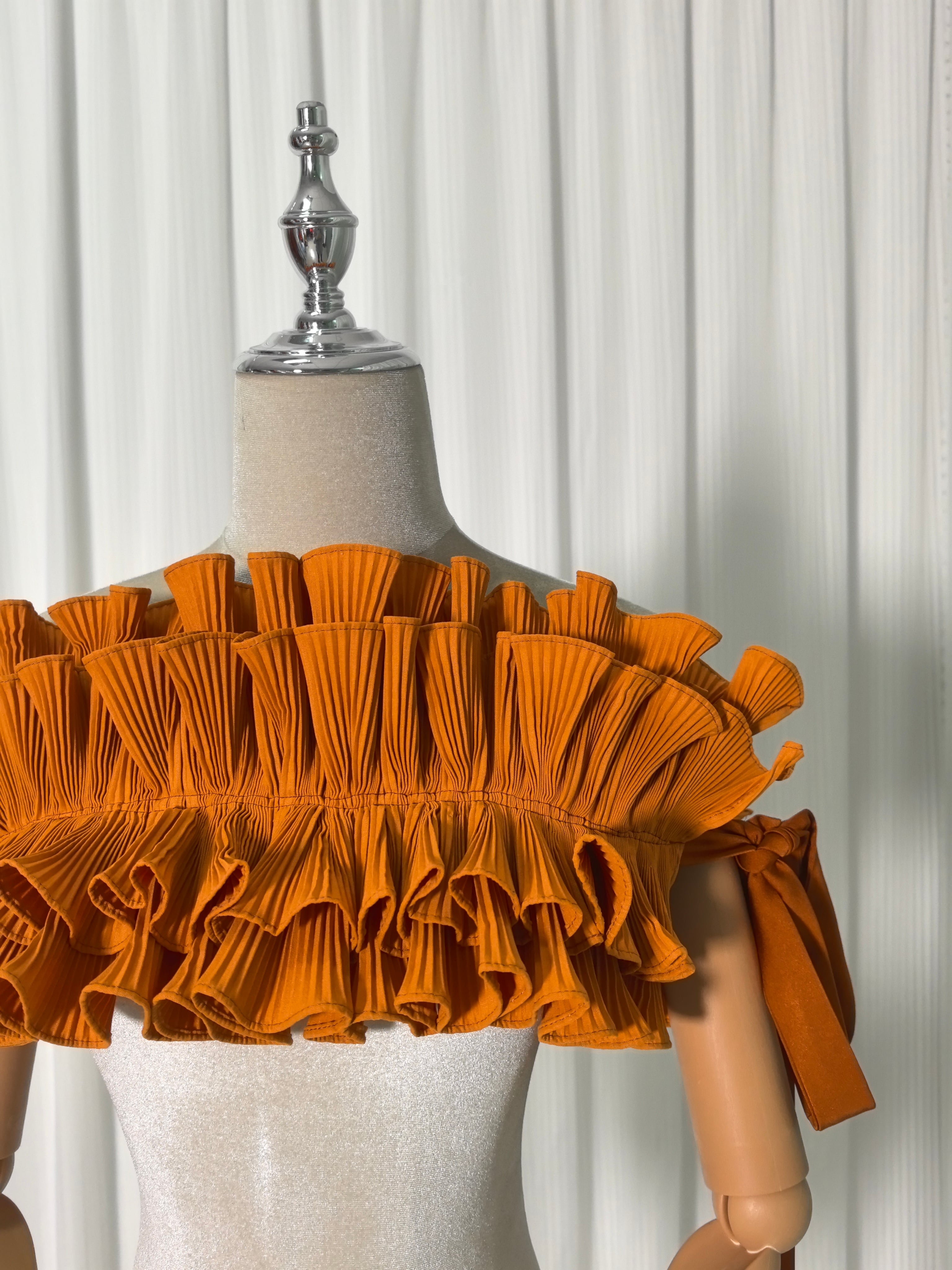 取り外しオフショルダーテラコッタ色 リボン 可愛い プリンセスライン デザイン感 花嫁