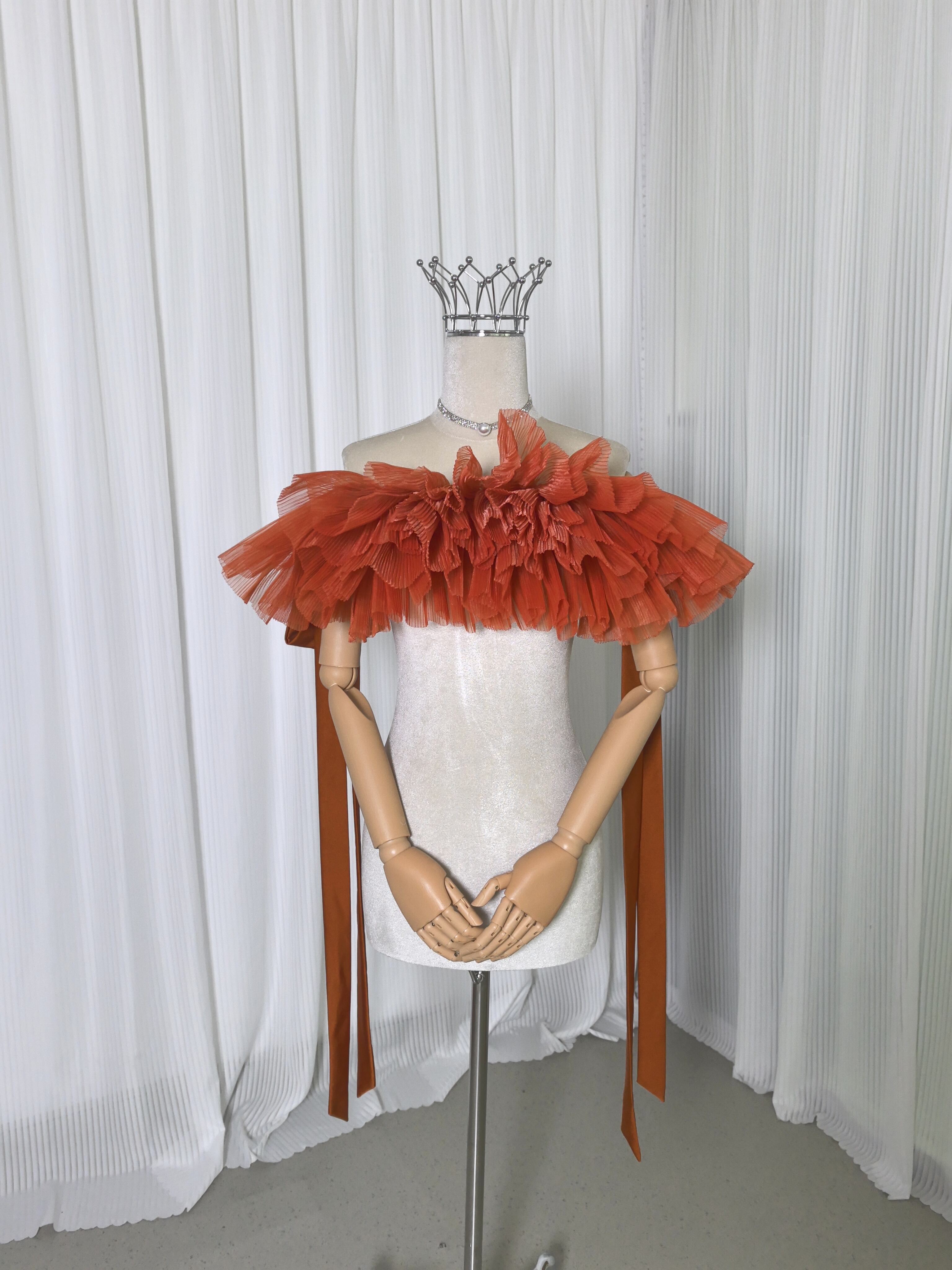 取り外しオフショルダー テラコッタ色 リボン 可愛い プリンセスライン 花嫁 前撮り