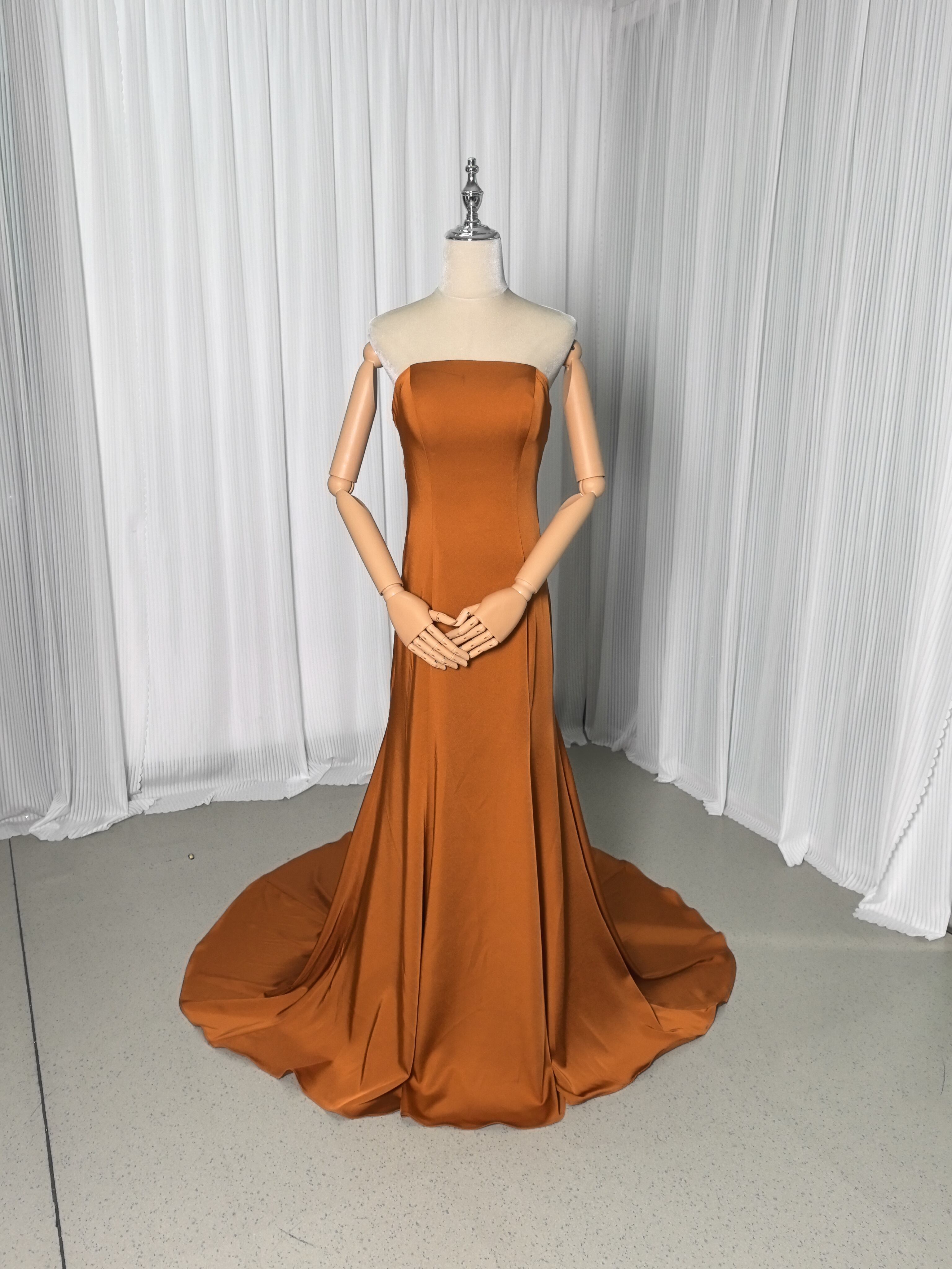 カラードレス テラコッタ色 ベアトップ スレンダーライン ファスナー 2次会/合コン