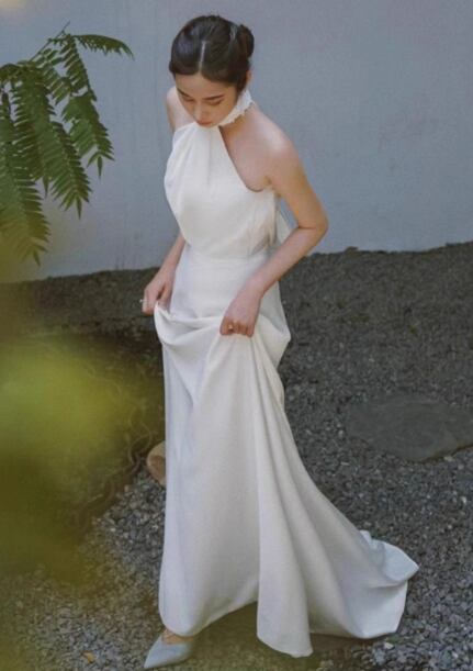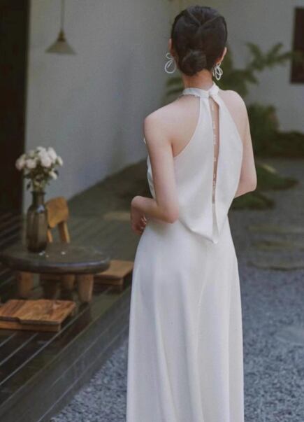 パーティードレス ホルターネック 背中見せ 優雅なシルエット 韓国風ドレス 二次会