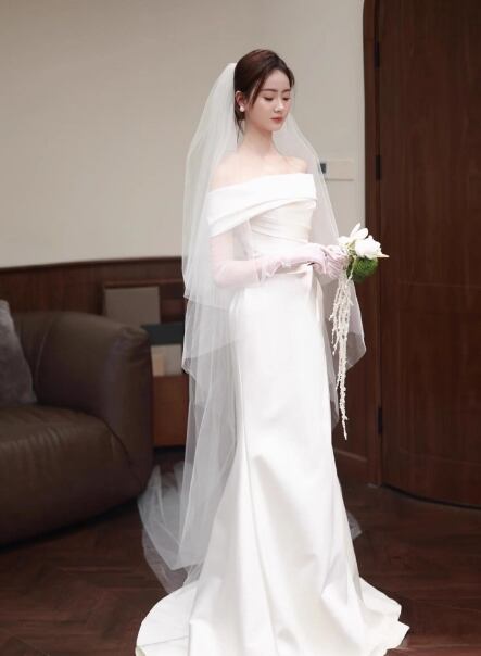 エレガント ウェディングドレス オフショルダー ハンドドレープ 優雅なシルエット 披露宴