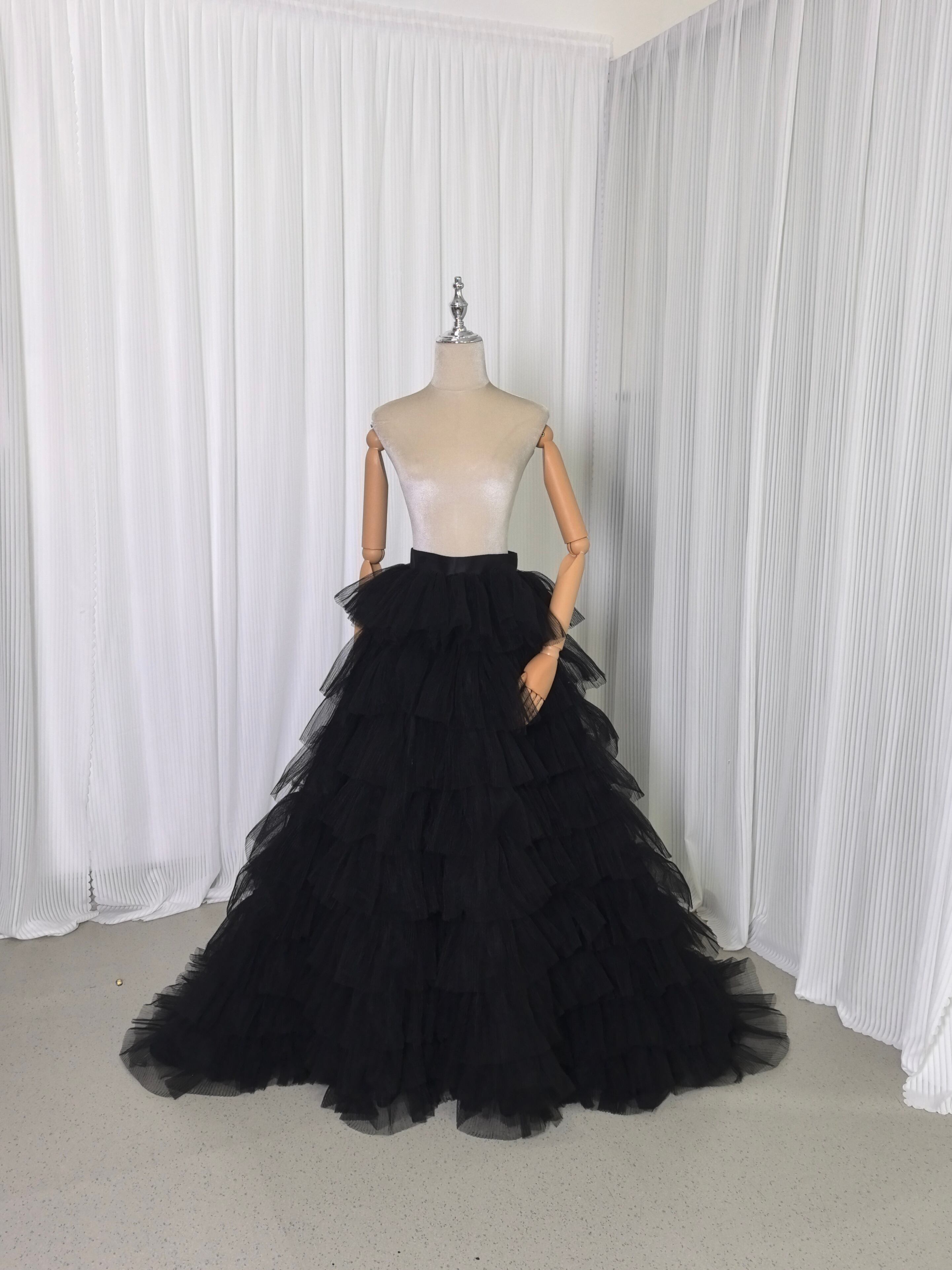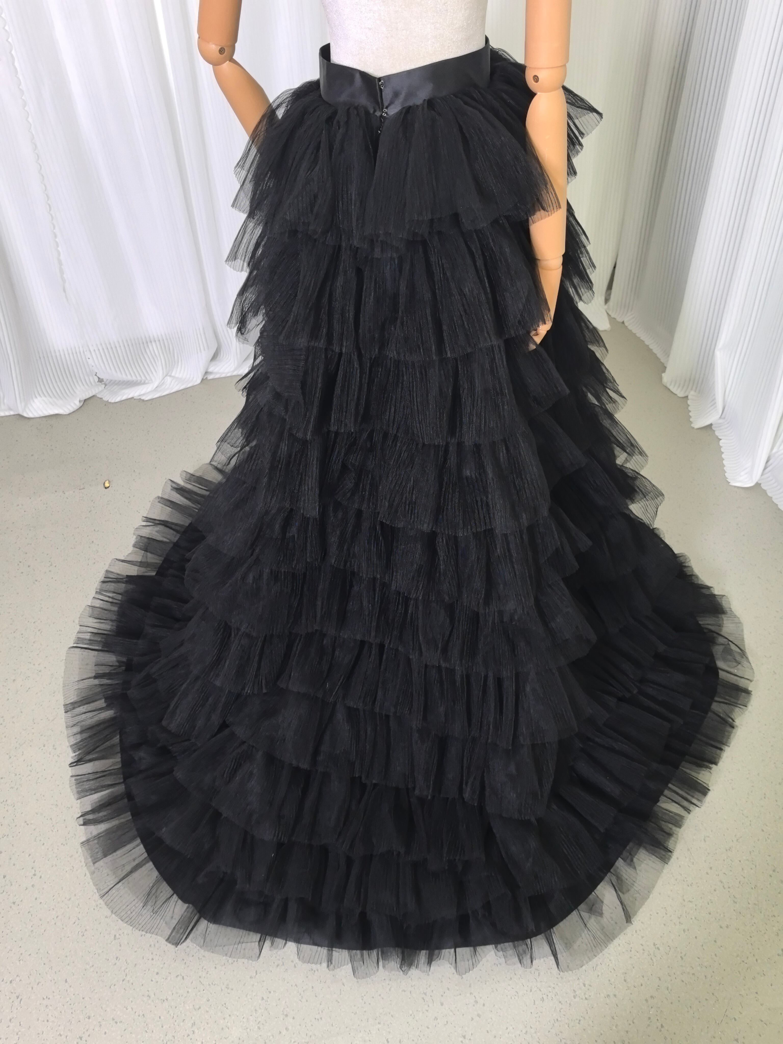 オーバースカート ブラック フレアスカート プリーツスカート ソフトチュール 前撮り エレガント