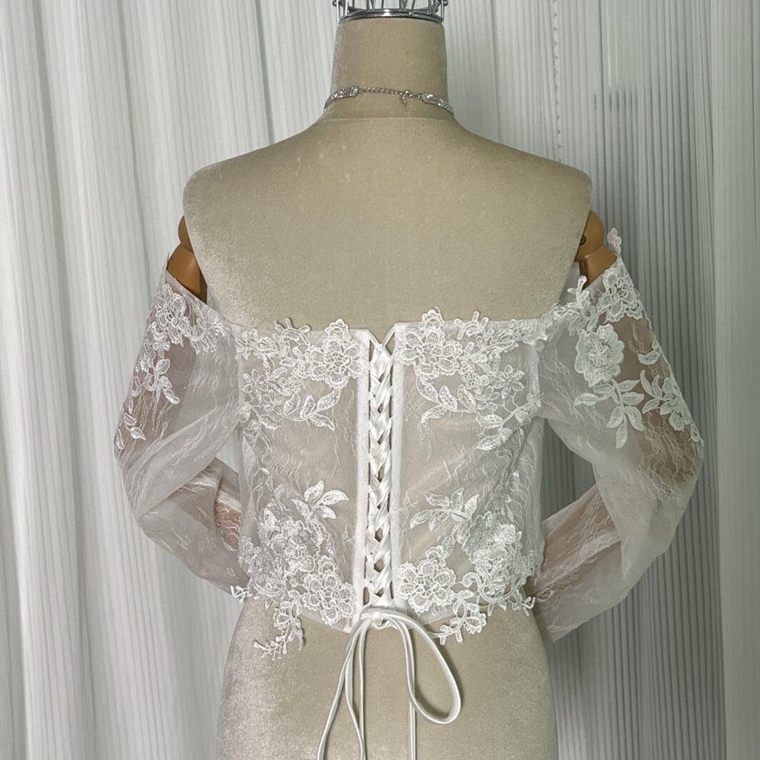 ボレロ オフショルダー ロングスリーブ 花モチーフ レース 編み上げ 花嫁/ウェディングドレス