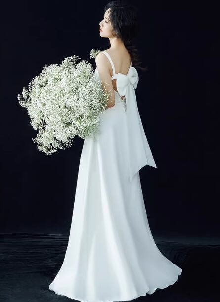 ウェディングドレス キャミソール 豪華なバックリボン エレガント 細見えシルエット 二次会