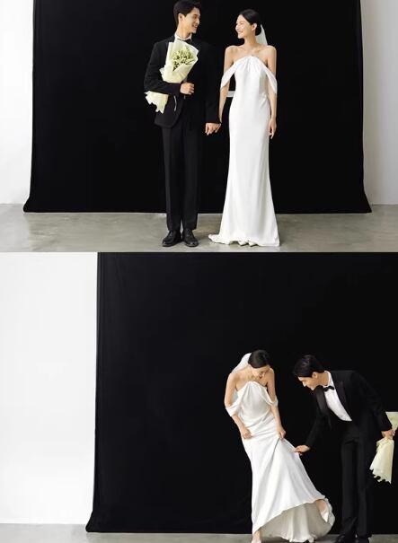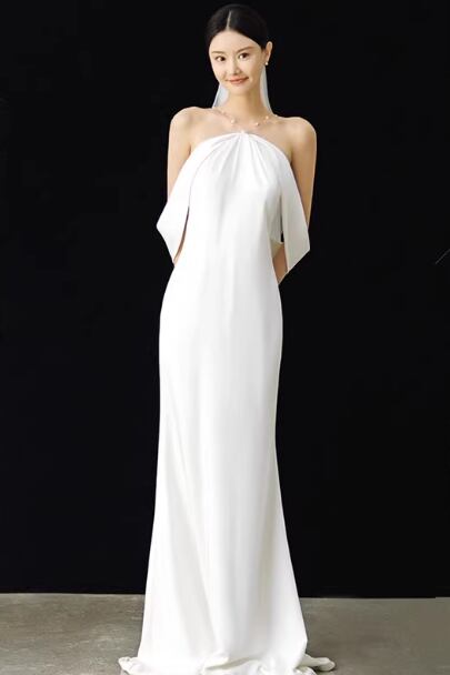 ウェディングドレス ドロップショルダー キャミソール 優雅なシルエット 背中見せ 前撮り