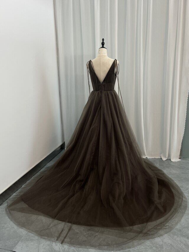 実例写真!パーティードレス グレー キャミソール リボン ファスナー 前撮り