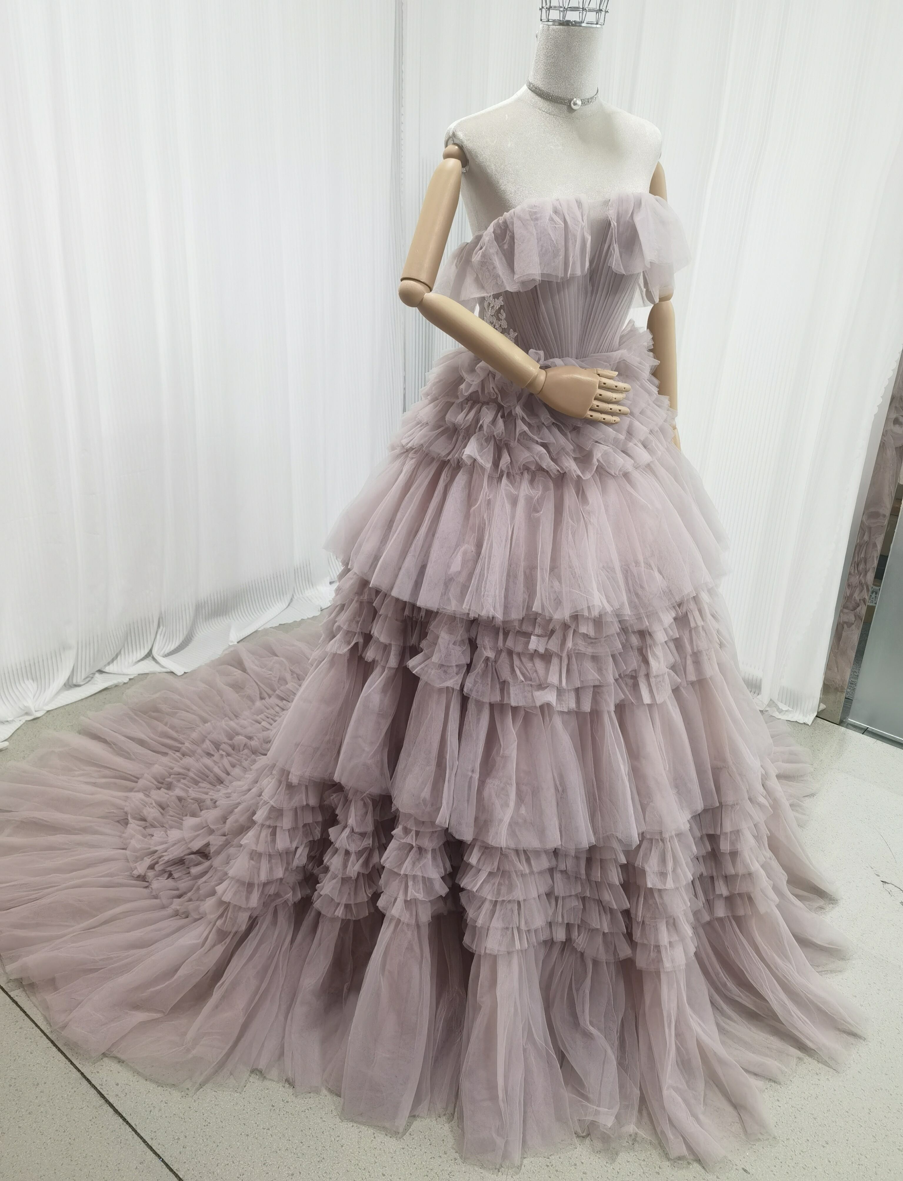 憧れのドレス カラードレス ピンク紫 ベアトップ 可愛い ボリュームドレス 抜群のおしゃれ見え 花嫁