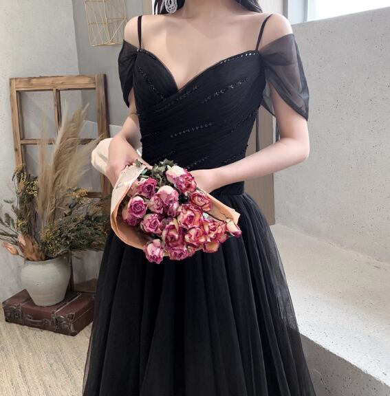 パーティードレス ブラック キャミソール キラキラスパンコール 大人っぽい ピアノ演奏会