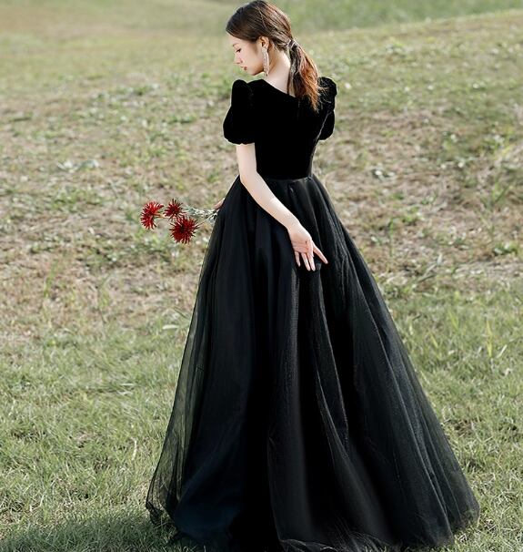 パーティードレス ブラック ビロード ソフトチュール 揺らめく裾 ピアノ演奏会/音楽会