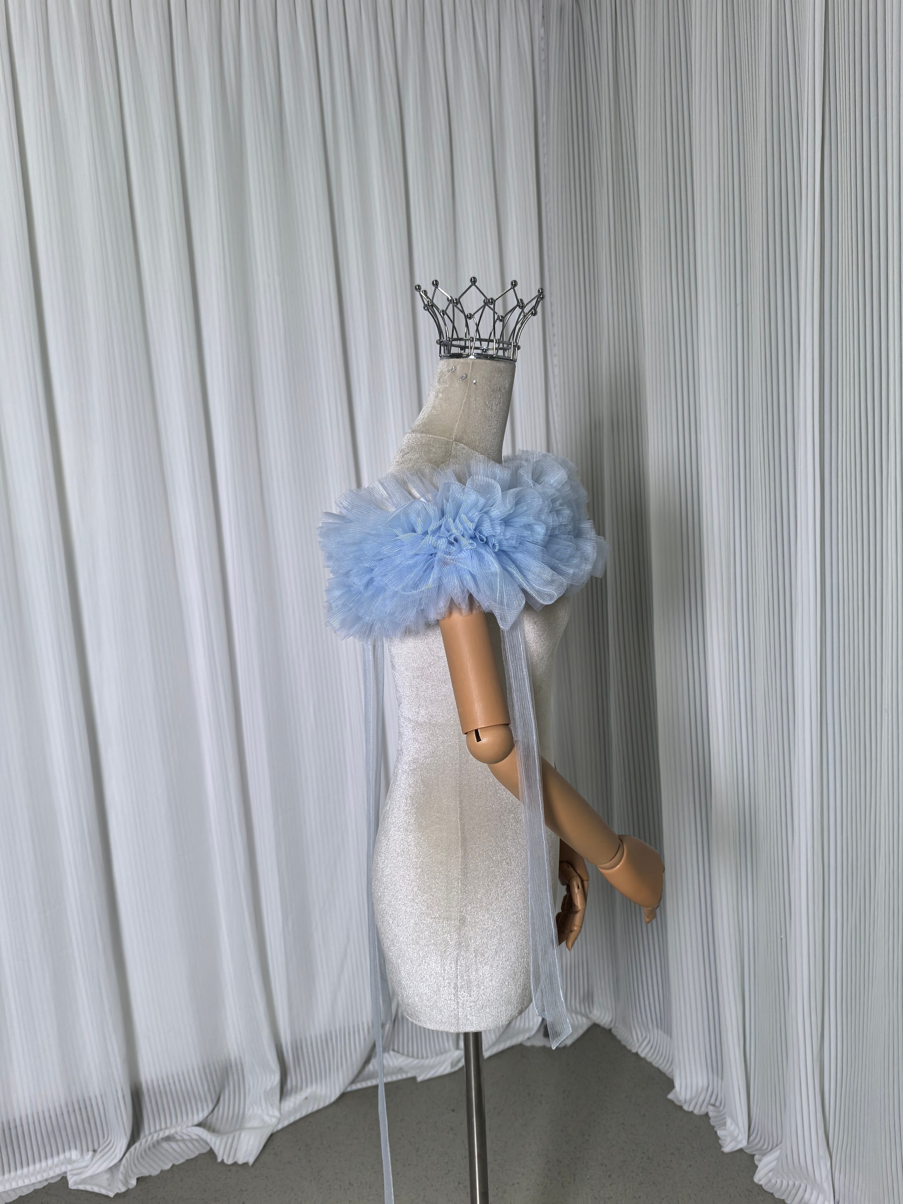 取り外しオフショルダー 爽やかで優しいブルー ラッフルフリル ビスチェ 編み上げ 前撮り